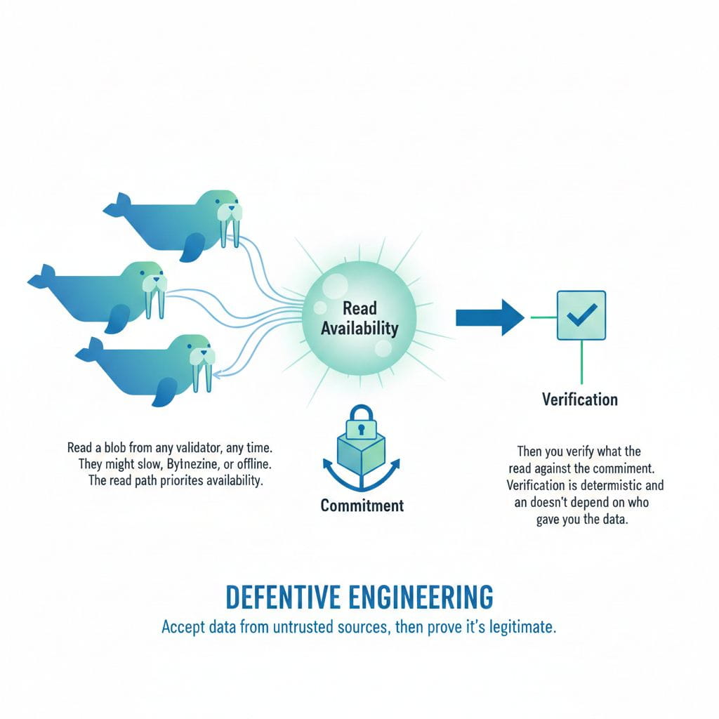 Here's where design maturity shows: Walrus separates read availability from verification.