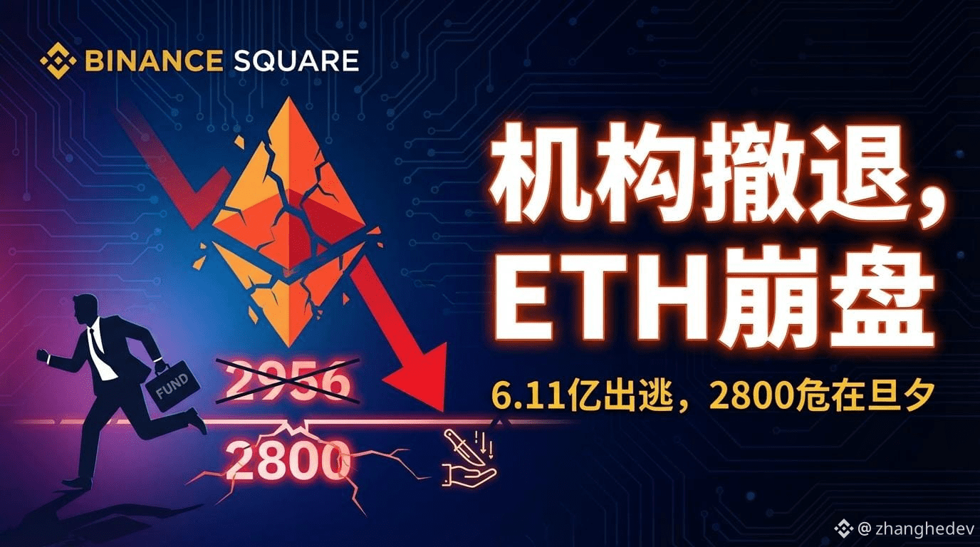 技术面上,$ETH 价格勉强维持在 $2900-$2950 区间,但这一支撑极其脆弱。矩形整理下沿 $2956 已被有效跌破,这是教科书式的看跌信号。下方 $2800 是最后一道防线,一旦失守,直奔 $2524 甚至更低绝非危言耸听。