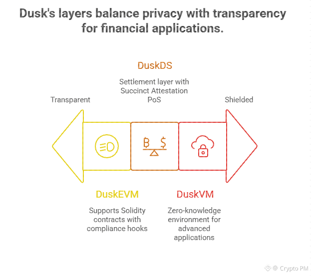 Dusk does not pretend one layer can do everything perfectly. Instead it runs three layers and each one does its own job even if that sounds messy to explain.