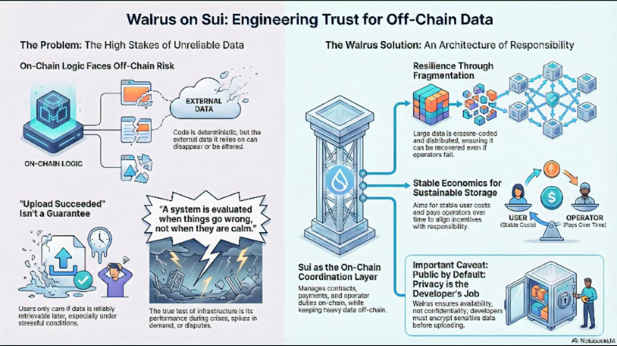 There are still risks. Long-term participation must hold through market cycles. Governance must remain active without drifting toward concentration or apathy. Storage costs must remain understandable as usage grows and data ages. Designing for maturity doesn’t remove uncertainty; it simply acknowledges that uncertainty is permanent. Walrus doesn’t promise perfection. It promises structure.