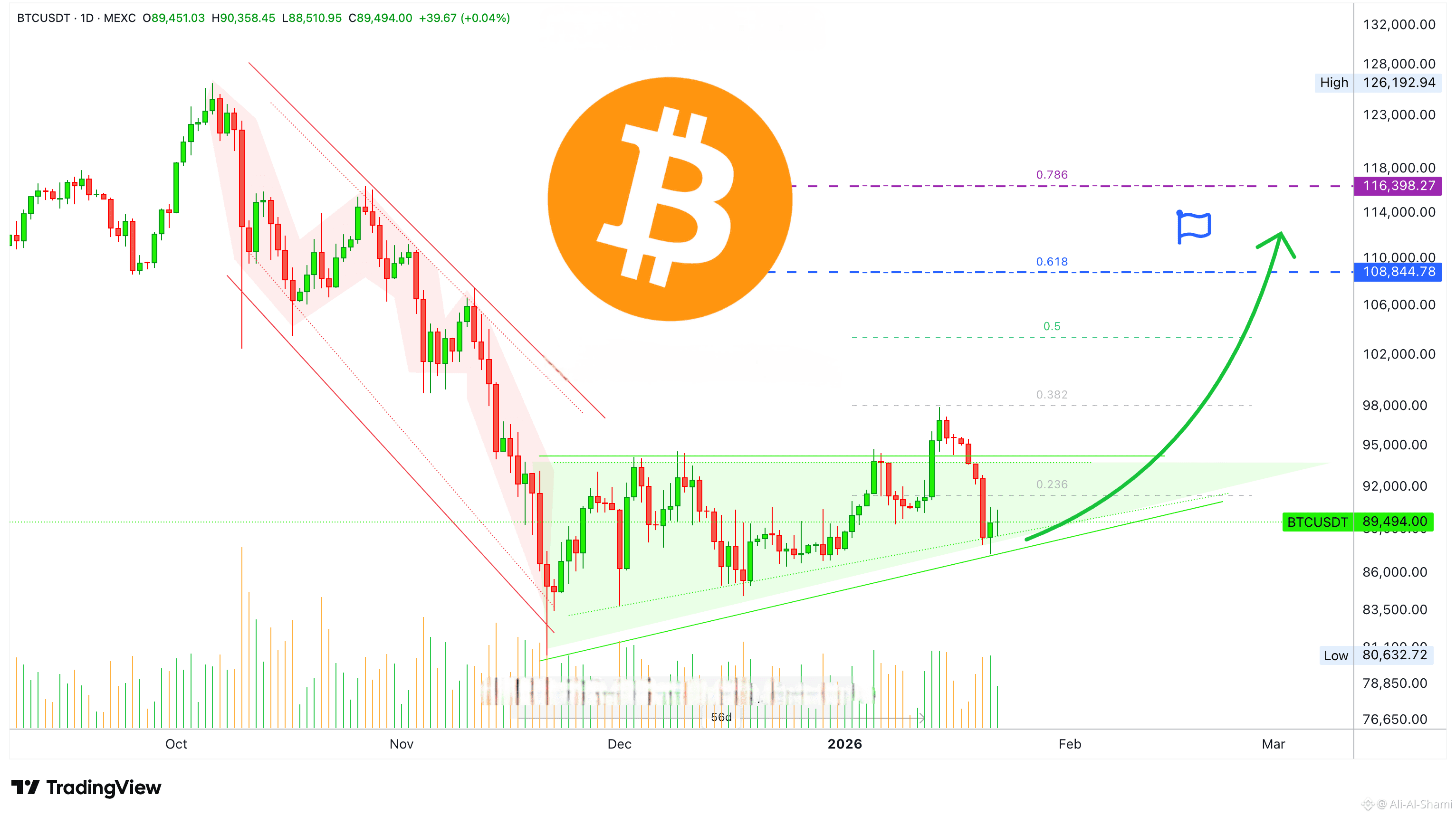 بغض النظر عن جميع التقلبات والنطاق الجانبي، كان أدنى مستوى ممكن هو 86,400 دولار، لم يكن أقل، وما زالت هذه التطورات صحيحة اليوم.