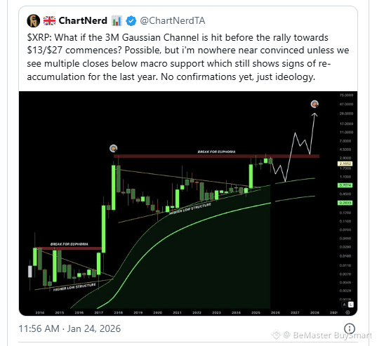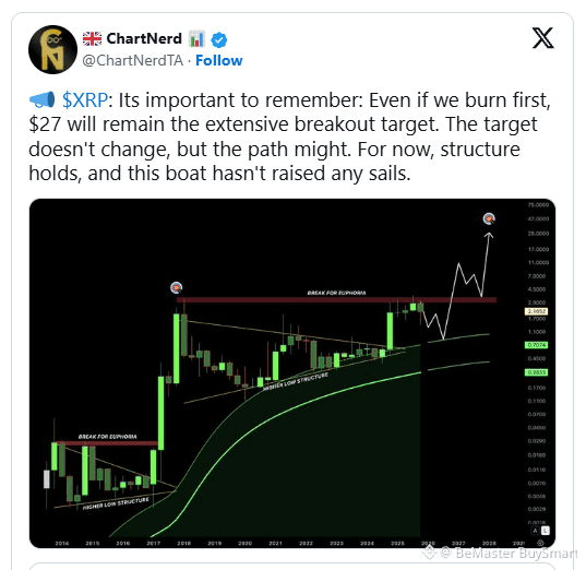 $XRP Crypto analyst ChartNerd has reiterated a long-term bullish outlook for XRP, emphasizing that a possible short-term decline would not invalidate the broader technical structure or the primary price objective.