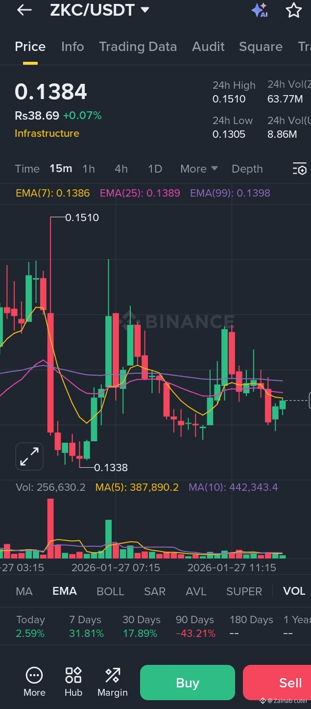 ZKC is trading in a tight range, signaling consolidation after recent volatility. Despite low price fluctuation, volume activity suggests accumulation rather than distribution. Infrastructure-focused projects continue to attract long-term interest, and ZKC’s ability to defend its support zone keeps the bullish structure intact. A breakout from this range could define the next direction.