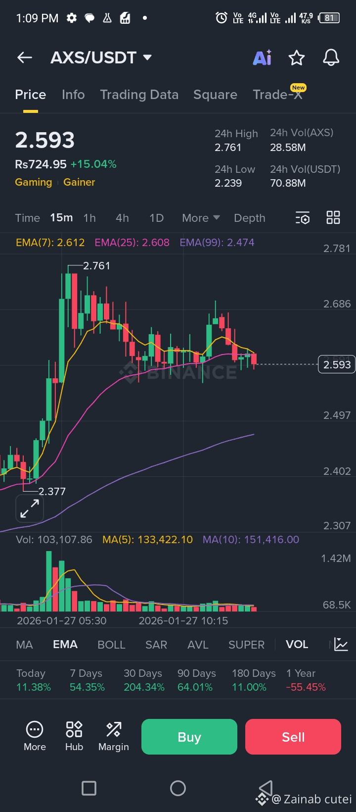 AXS is showing renewed strength as buyers step back in after a healthy pullback. With strong intraday gains and rising volume, market sentiment is shifting bullish once more. The gaming sector is quietly heating up, and AXS remains one of the top tokens to watch as price holds above key short-term averages. Any continuation above resistance could trigger another expansion move.