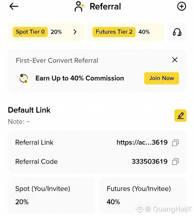 Đừng lo! Với chương trình hoàn phí (rebate/cashback) lên đến 40% Futures và 20% Spot, bạn có thể giảm đáng kể chi phí giao dịch, giữ lại nhiều tiền hơn trong túi mỗi ngày.Đây là 1 vinh dự rất lớn khi @QuangHaiJK sẽ làm đối tác hoàn phí lên đến 40% futures và 20% spot cho anh em .