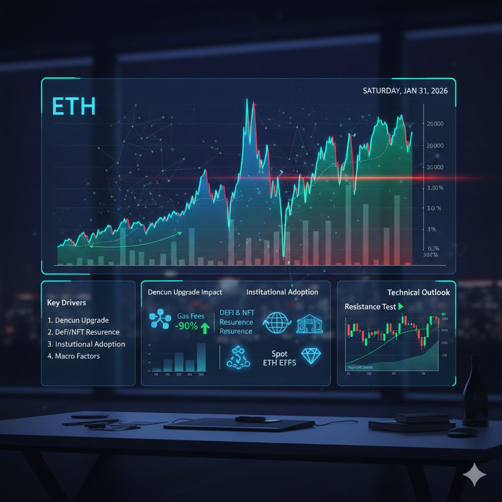 $ETH has been a significant player in the crypto market, consistently holding its position as the second-largest cryptocurrency by market capitalization. Recent analysis shows a dynamic period for ETH, influenced by broader market trends, technological advancements within its ecosystem, and evolving regulatory landscapes.