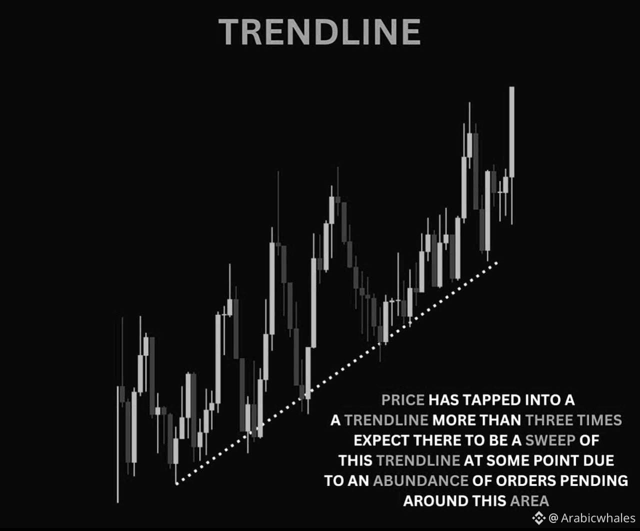 ◇ عندما يعيد السعر اختبار خط الاتجاه عدة مرات، وذلك لأن هناك وفرة من أوامر على تلك المنطقة.