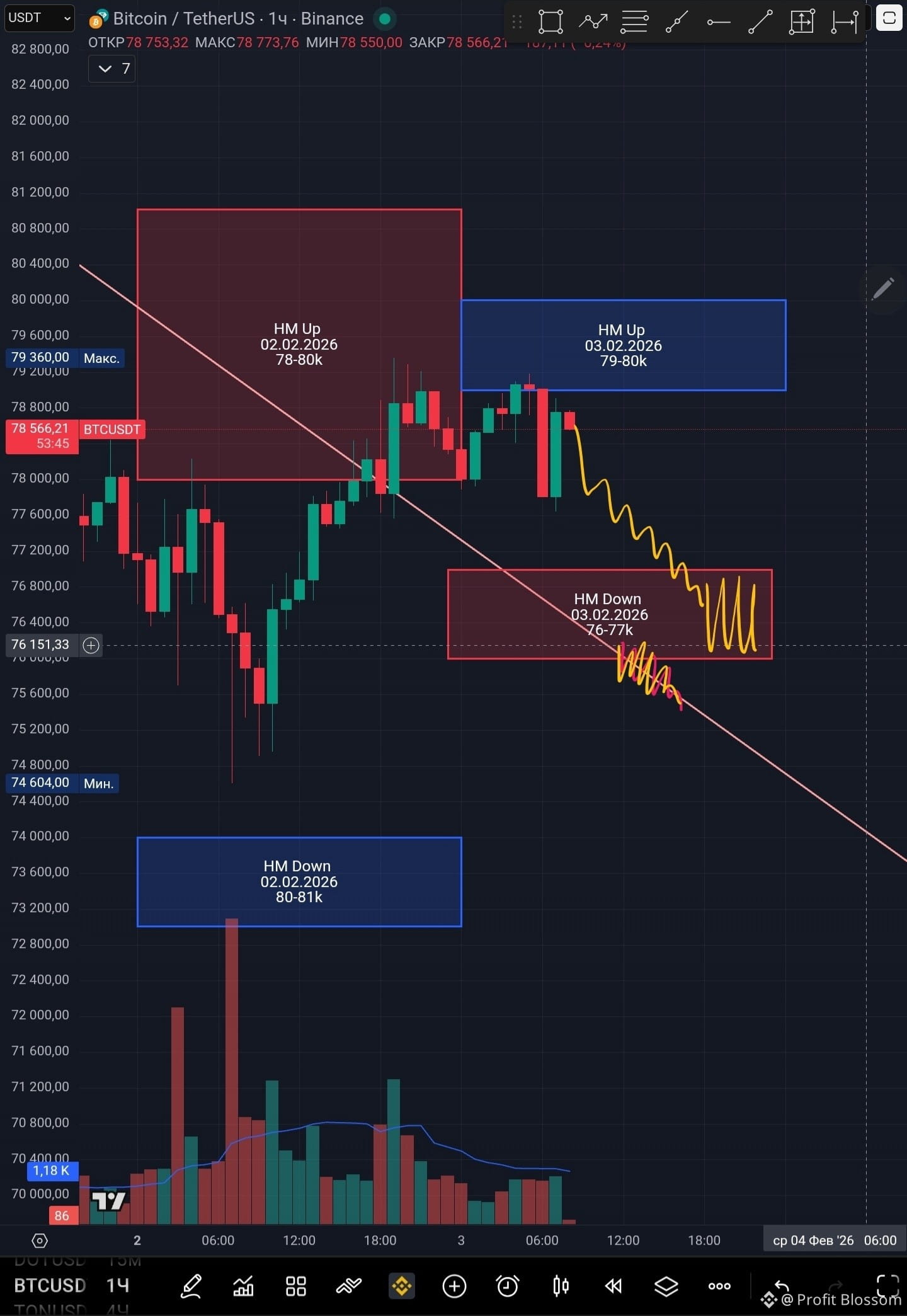 📍 Тепловая карта нам даёт горячий уровень 78-80k и холодный уровень 74-45k