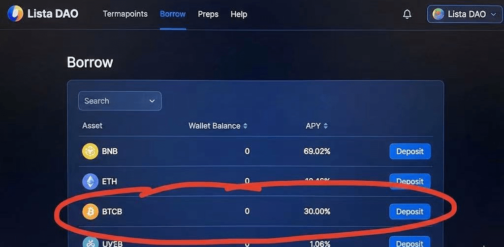 Zwróć uwagę na stawki: Zwróć uwagę na Borrow APY (oprocentowanie pożyczek), zazwyczaj oprocentowanie pożyczek BTCB jest bardzo niskie (czasami wynosi zaledwie 1% lub nawet mniej).