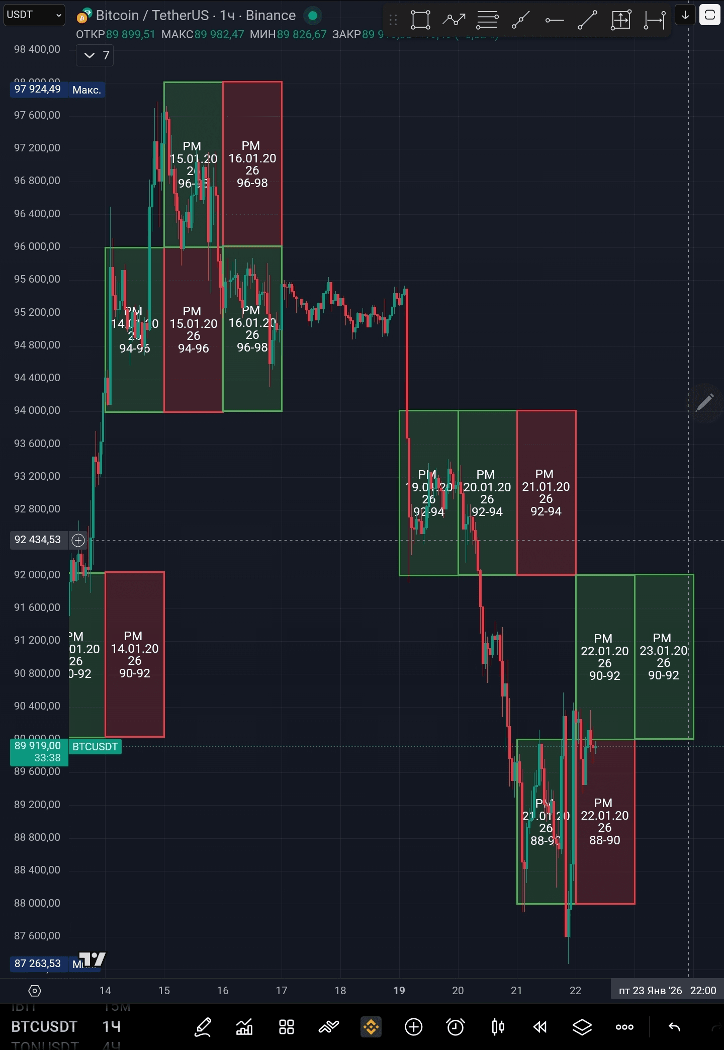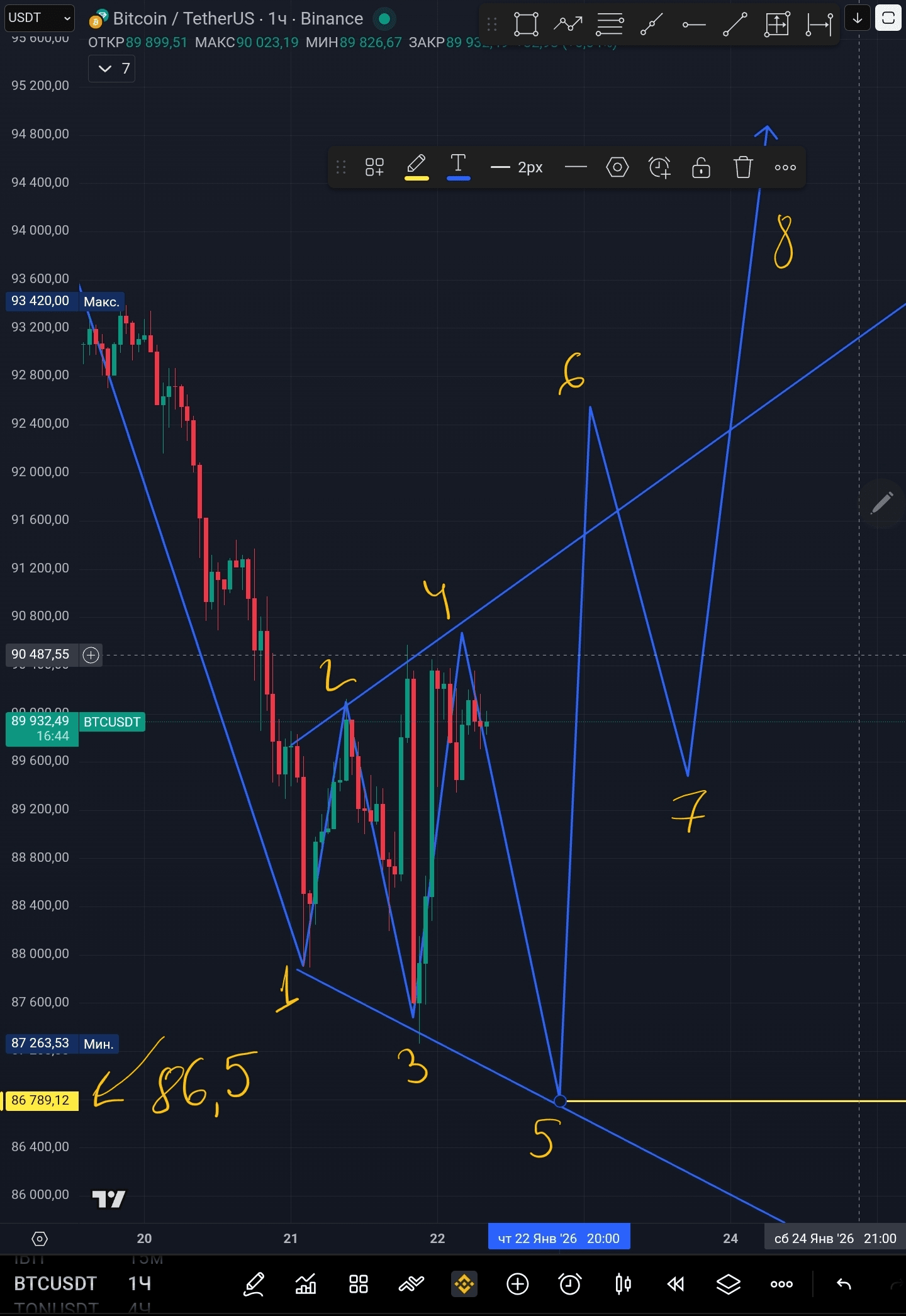 📍Вывод для себя я делаю следующий: отмена тарифов трампа является хорошим стимулом для цены всей экономики не только криптовалюты. Все тепловые карты сегодня взорвались зелёным цветом. Также это стало катализатором коррекции для металлов о котором я неоднократно говорил (сегодня постараюсь сделать разбор по цене металлов). Но, буду ли я покупать $BTC прямо сейчас? Я так не думаю, каждый хай выше предыдущего, каждый лоу ниже предыдущего, рынок штормит. Инвесторы не до конца понимают что им делать: то ли радоваться отмене тарифов, то ли бояться вчерашней холодной ястребиной риторики Трампа по поводу Гренландии в стиле, "Либо отдавайте сами, либо заберем силой" Бычья дивергенция на часовых графиках, коррекция цены металлов, зелень на тепловых картах свидетельствует о том, что у цены есть возможность пробить линию сопротивления, НО с равной, долей вероятности цена может протестировать новый Лой в районе 86,5k❗Оценивайте риски, друзья!
