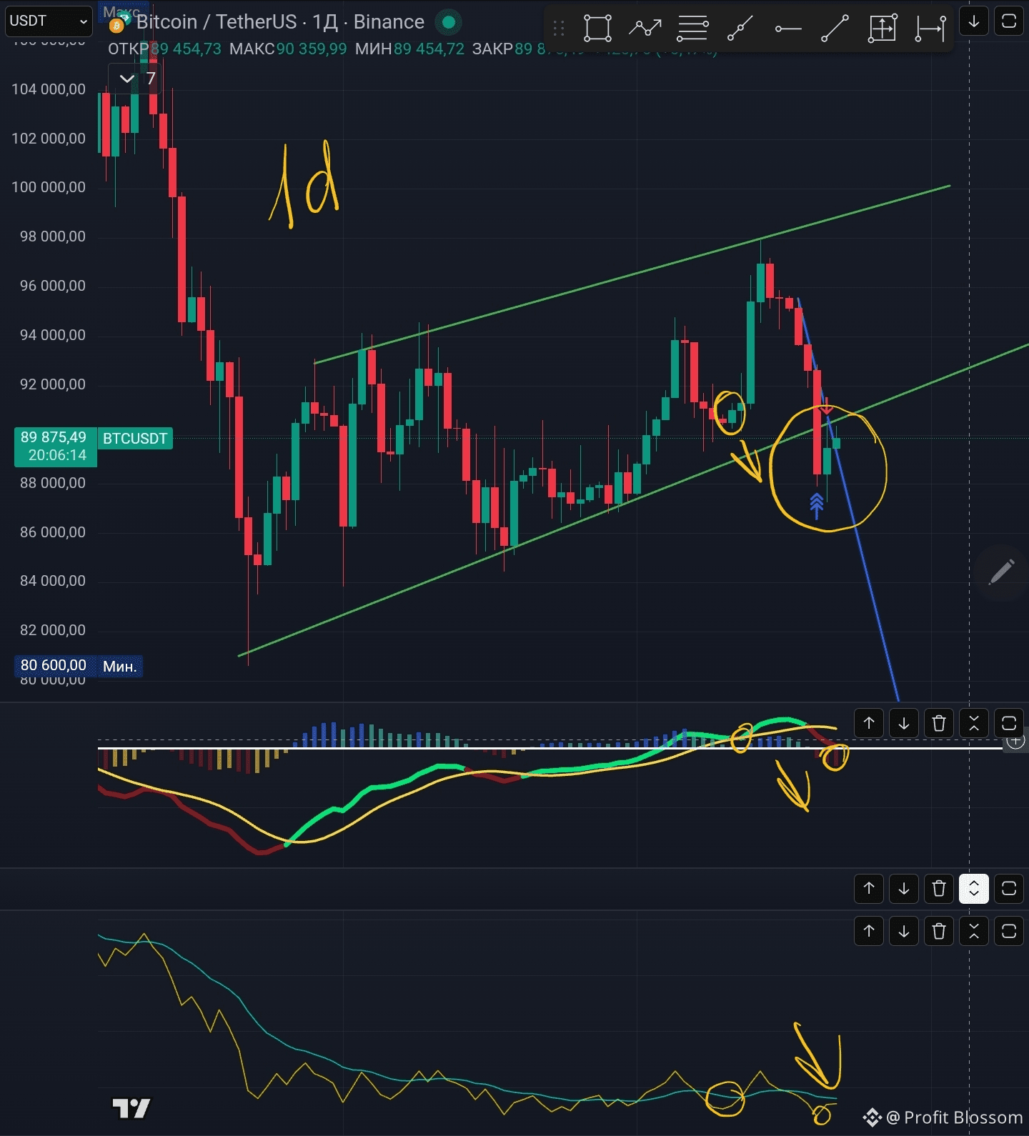 Доброе утро дорогие друзья! Цена вышла из паттерна продолжение тренда восходящий клин. На дневных графиках индикаторы MACD и Балансовый объём подтверждают нисходящую структуру.