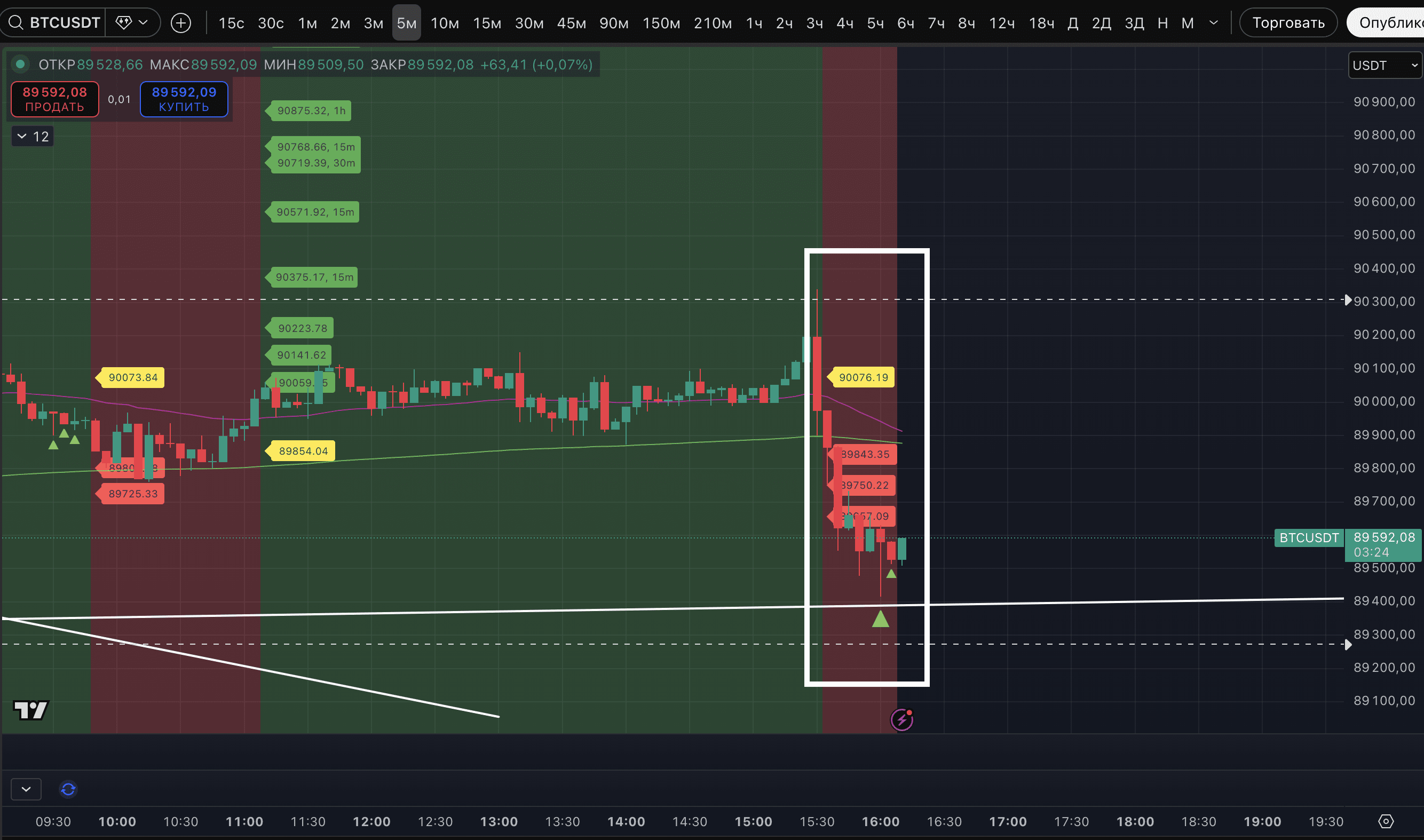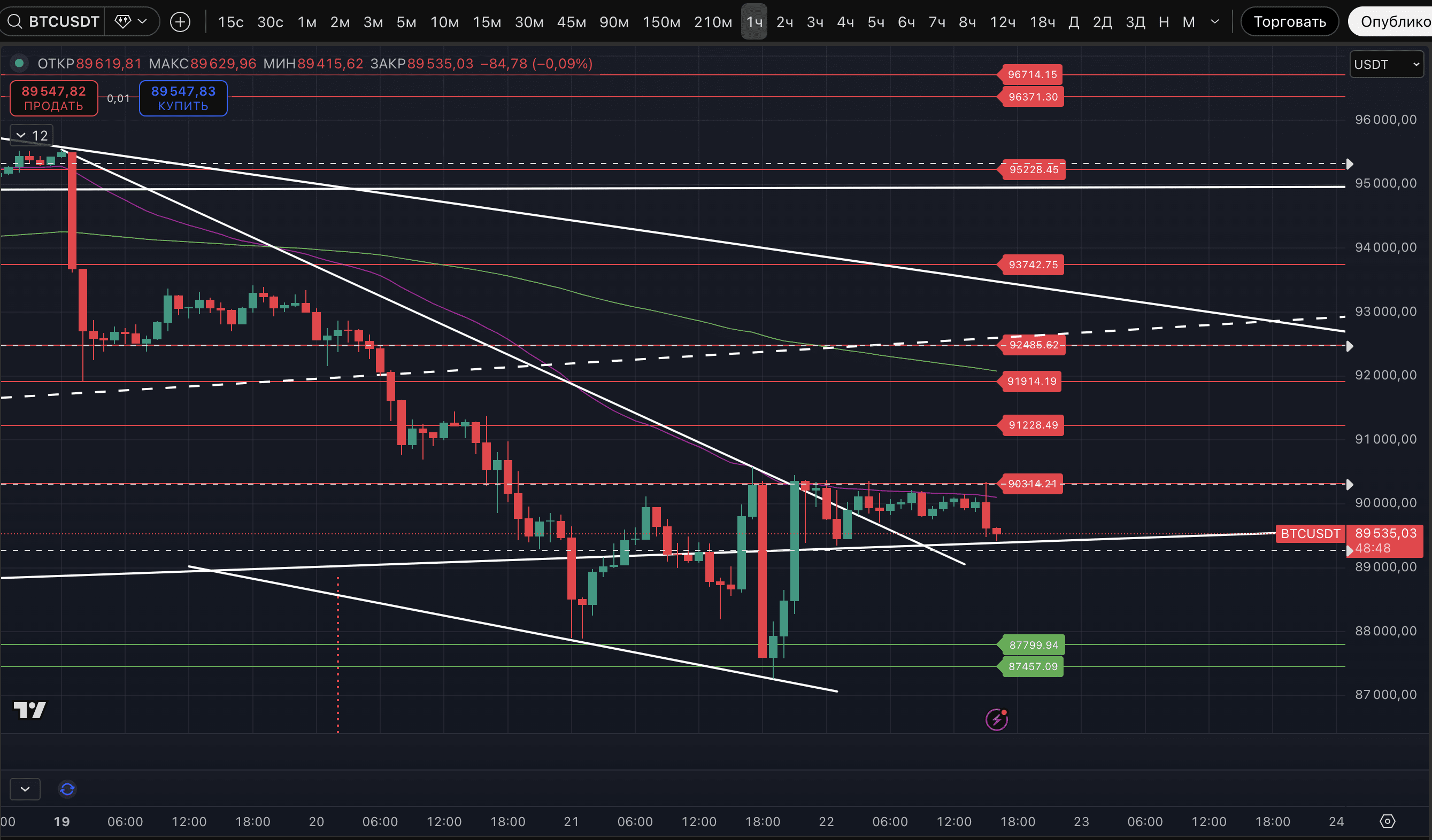 Dlatego mamy odpowiednią reakcję rynków. Ale na razie za wcześnie, aby mówić, że te dane "zatrzymają" zaplanowany start odbicia. Większość danych ukazała się w ramach prognoz i została już uwzględniona w cenach. Obecne spadki są na razie traktowane jako dodatkowe uzupełnienie płynności przed kolejną próbą przebicia ważnych oporów. W przypadku #BTC obecnie przypominamy, EMA 50 godzinowej TF i poziom horyzontalny 90 314$.
