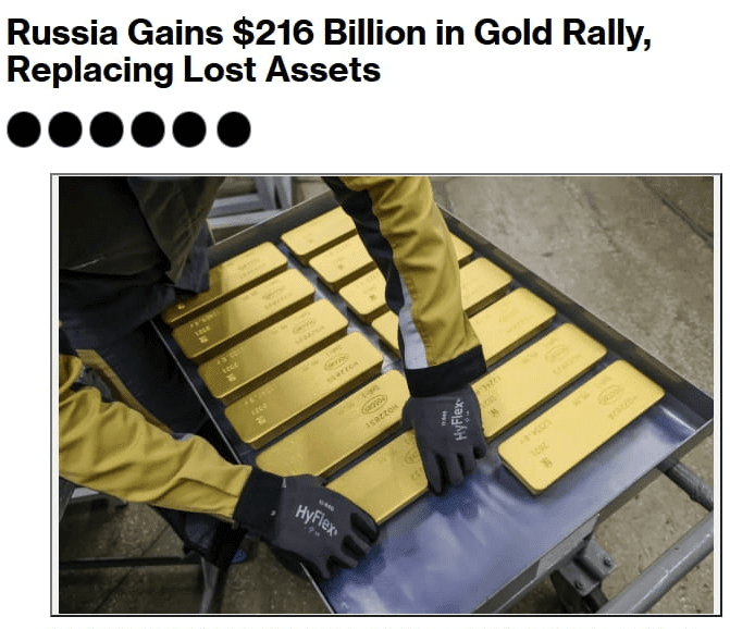 Zamiast upadku, Rosja potajemnie zwiększyła swoje rezerwy złota na swoim terytorium. Od 2022 roku wartość rosyjskiego złota wzrosła o około 216 miliardów dolarów.