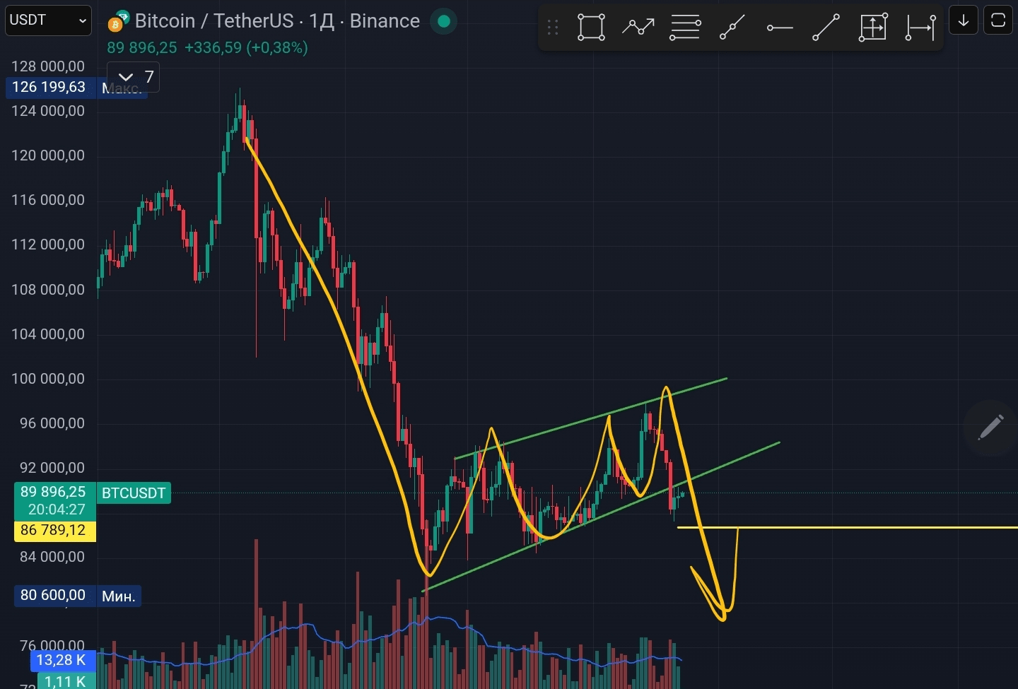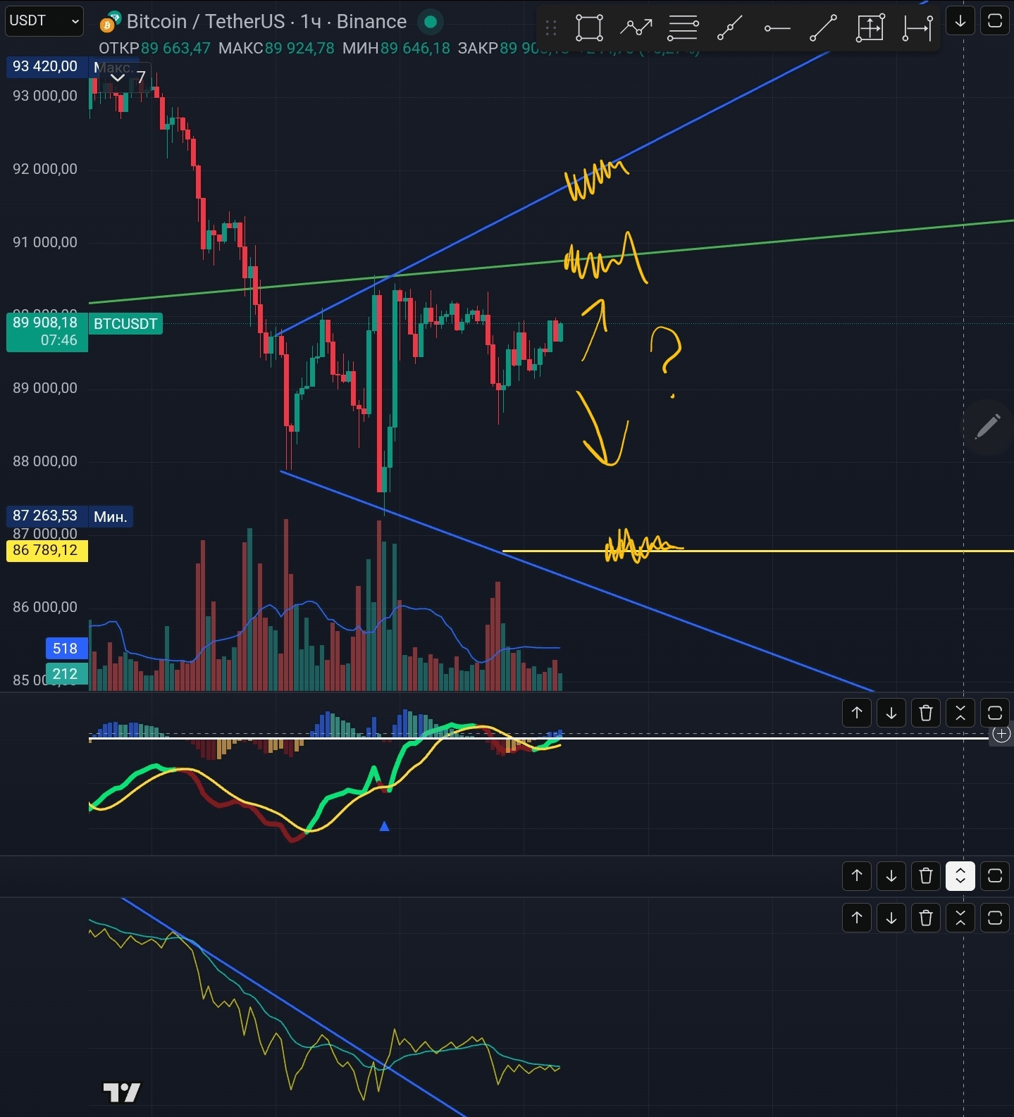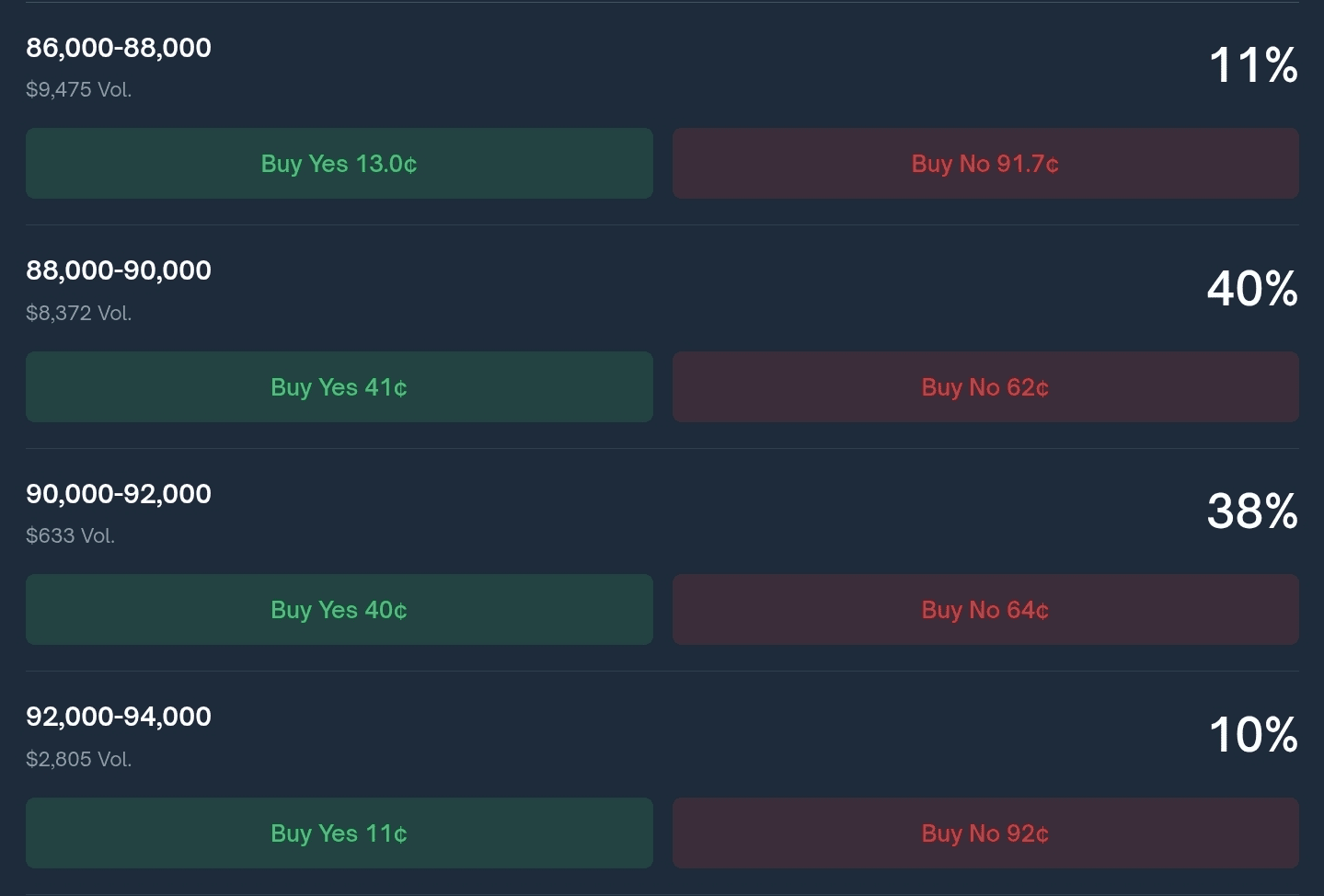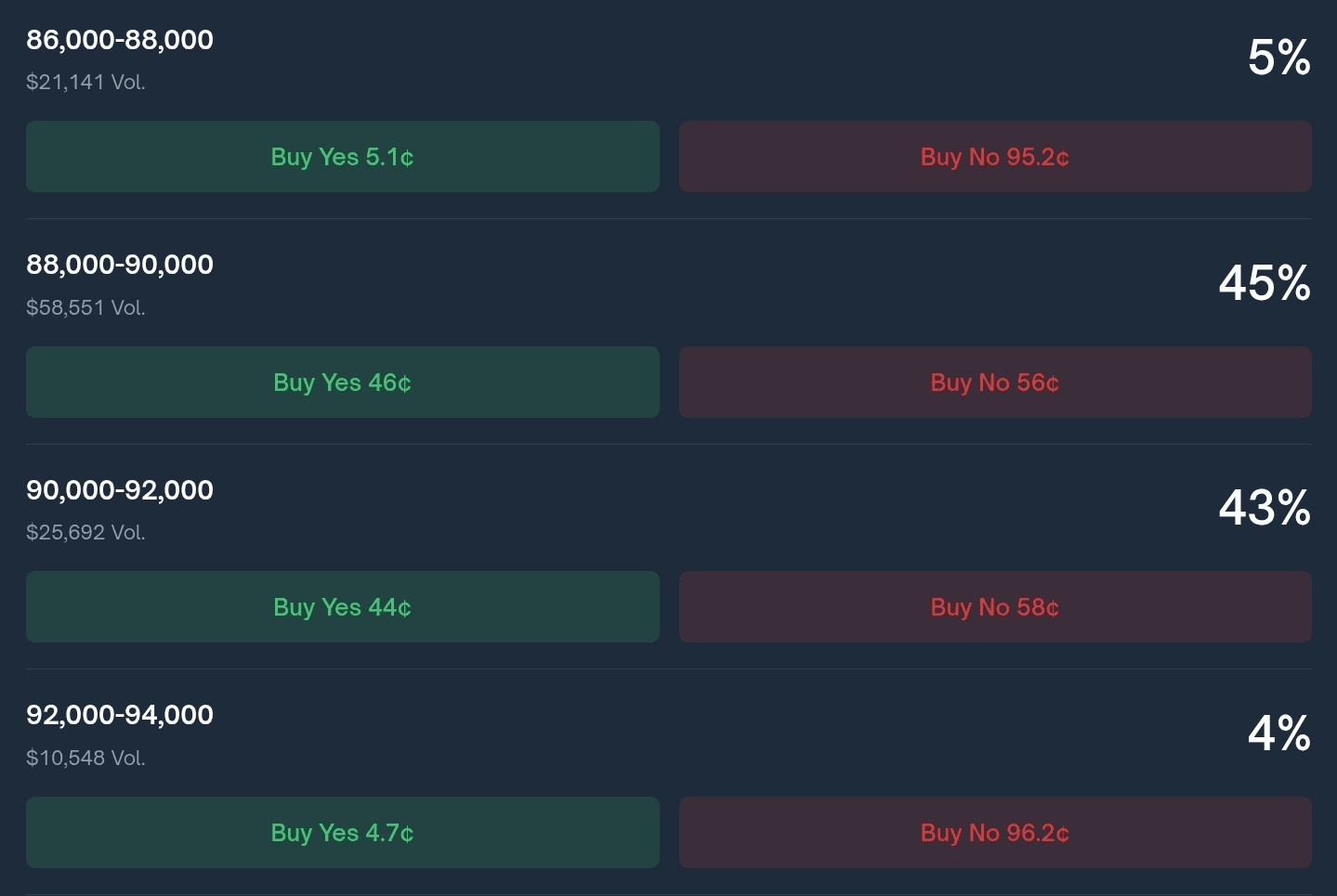📍Prognoza większości w Polymarket na dziś i na jutro daje nam najbardziej prawdopodobny przedział cenowy 88-90k