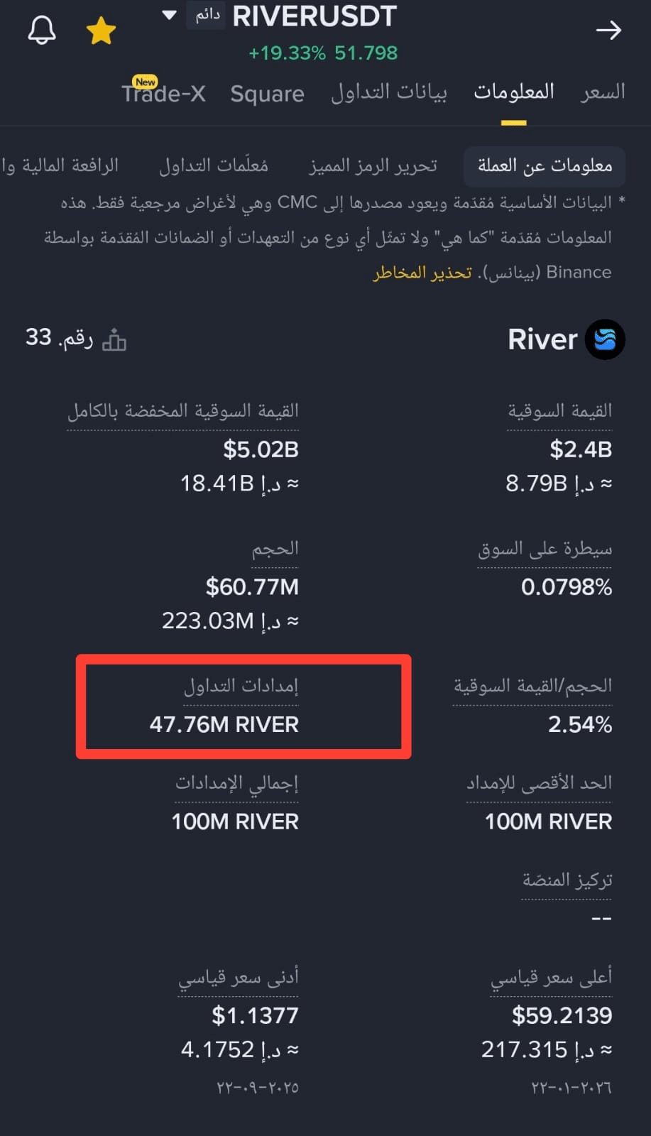 Teraz dane zostały zaktualizowane i liczba tokenów RIVERUSDT wynosi 47,76 miliona.
