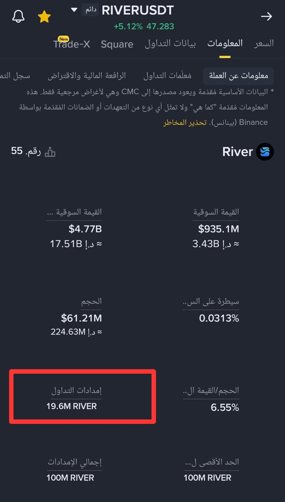 W zeszłej nocy liczba tokenów RIVERUSDT dostępnych do handlu wynosiła 47,41 miliona.