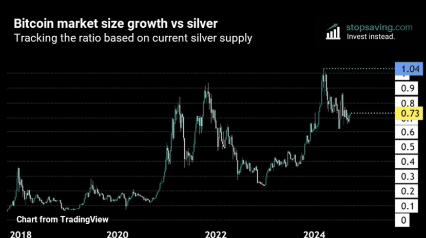 Nov/2024: kapitalizacja rynkowa Bitcoina przekroczyła srebro na krótki okres — symboliczny szok.