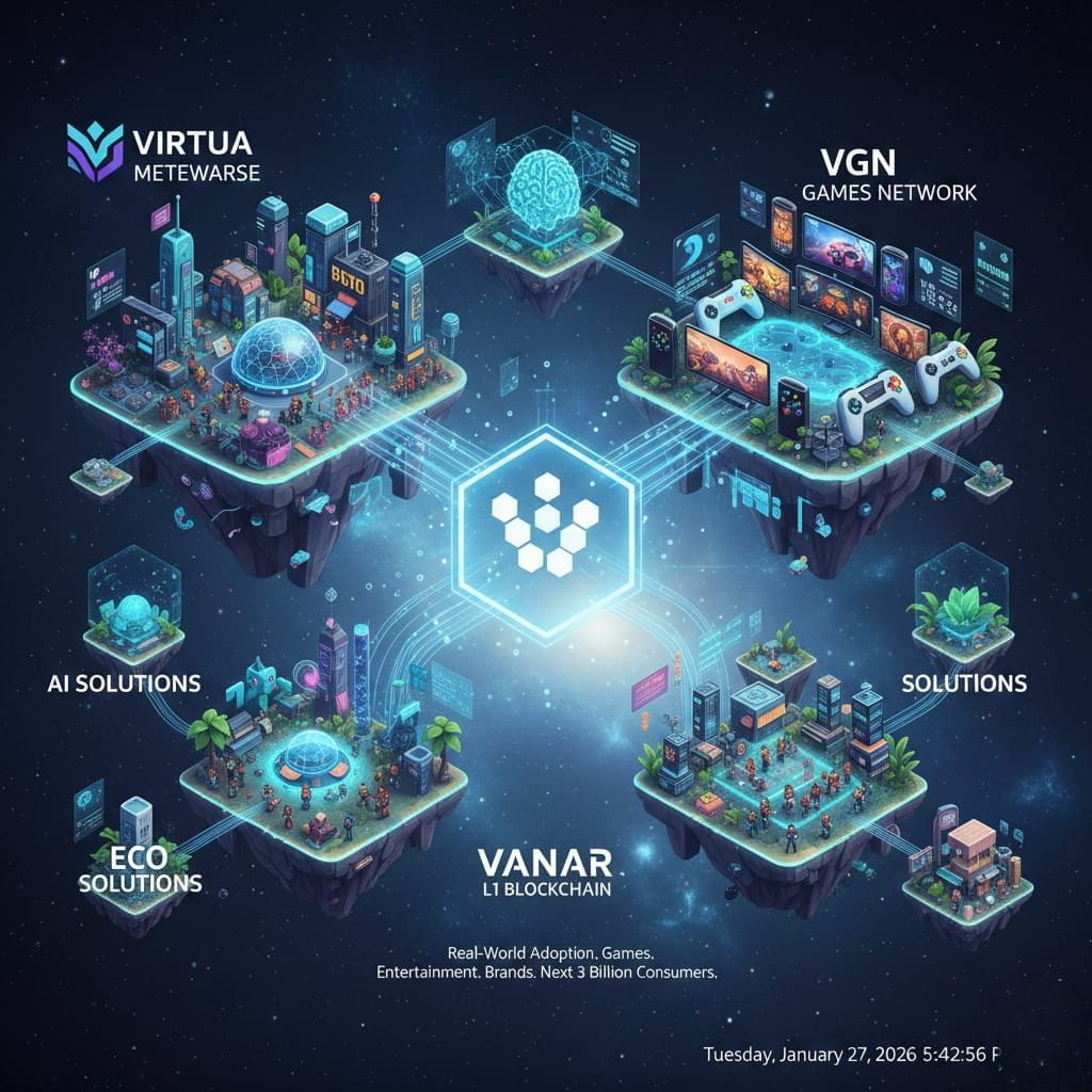 Jednym z najbardziej rozpoznawalnych ekosystemów zbudowanych na Vanar jest Virtua Metaverse, platforma łącząca immersyjne środowiska wirtualne z cyfrowymi kolekcjonowanymi przedmiotami, interakcją społeczną i markowymi doświadczeniami. Virtua odzwierciedla szerszą strategię Vanar w zakresie wprowadzania użytkowników za pomocą znanych formatów, takich jak gry, wirtualne przestrzenie i franczyzy rozrywkowe, zamiast zmuszać ich do zrozumienia skomplikowanej mechaniki blockchain na początku. Poprzez abstrahowanie technicznych trudności, Vanar umożliwia użytkownikom interakcję z produktami Web3 w sposób naturalny i intuicyjny, niezależnie od tego, czy zbierają cyfrowe aktywa, uczestniczą w wydarzeniach wirtualnych, czy angażują się w treści markowe.
