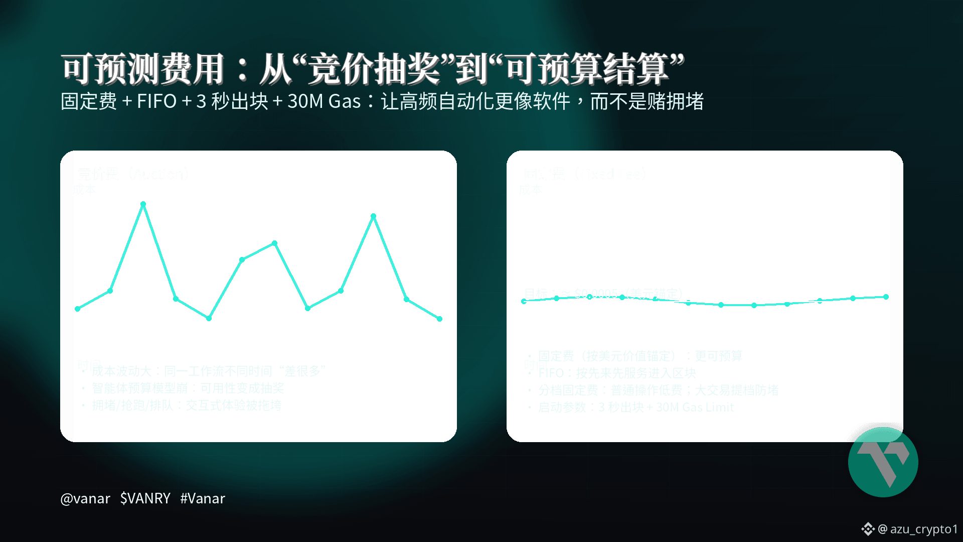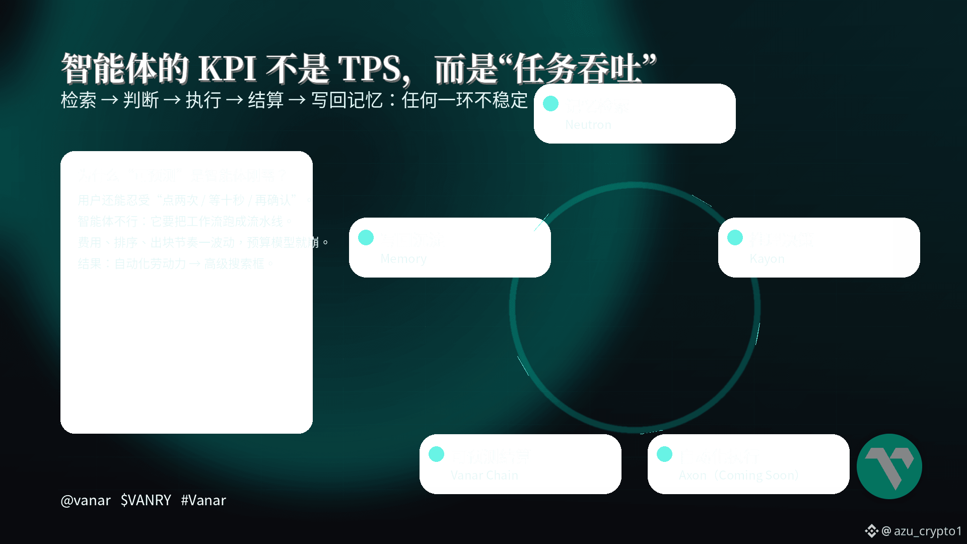 站在加密投资者的角度,我会把今天的结论说得更直白一点:Vanar 想做的不是一条“讲 AI 的链”,而是一条“按智能体工作方式设计的链”。当你看到它用 5 层栈去拆解智能(基础设施/记忆/推理/自动化/行业应用),又在白皮书里用固定费、FIFO、3 秒出块、30M gas limit 这类“工程参数”去支撑高频自动化时,你至少能判断一件事:它知道智能体时代的底层瓶颈不在 TPS 海报上,而在“闭环能不能稳定跑起来”上。