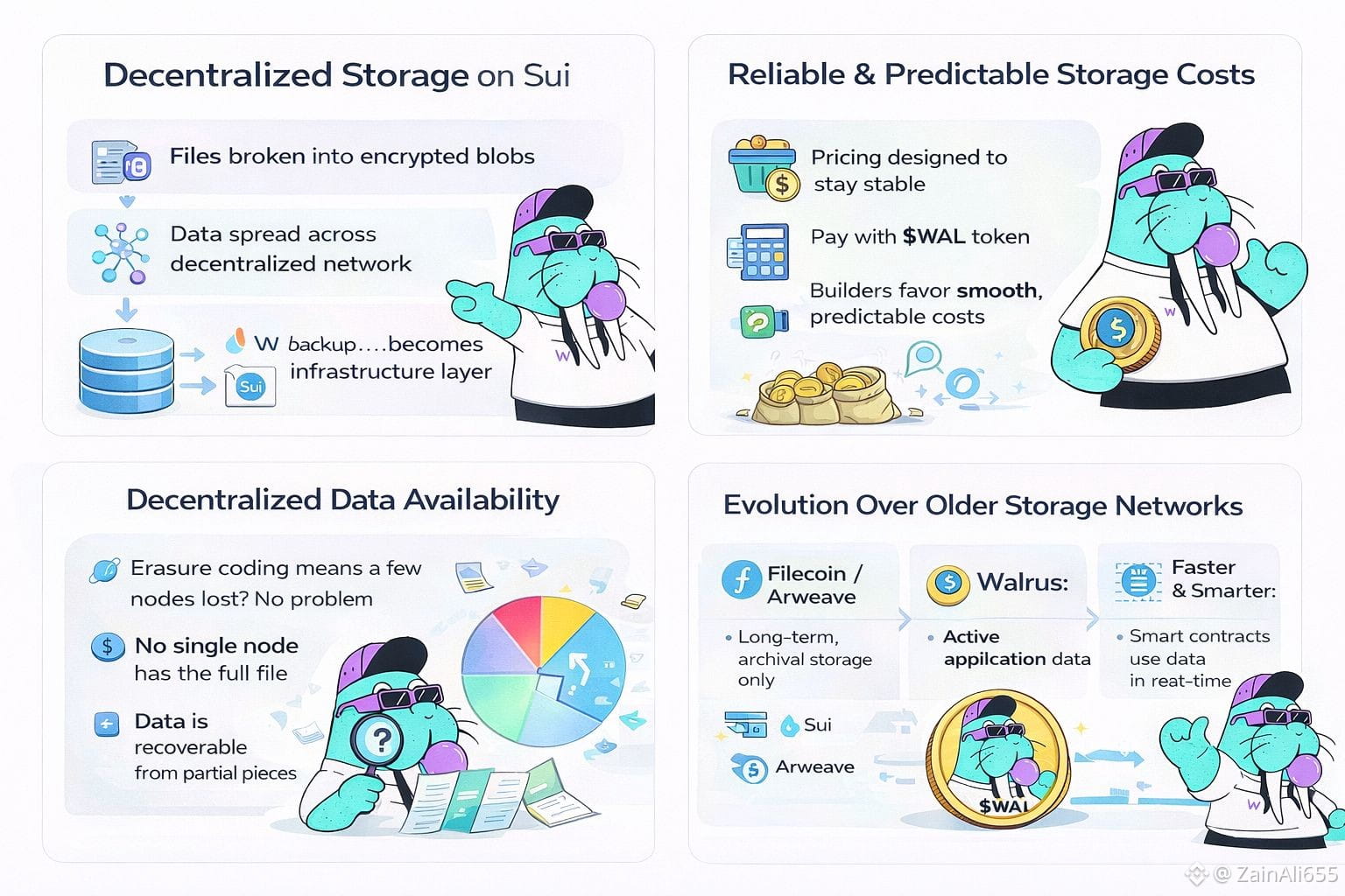 Walrus is a decentralized storage and data-availability protocol built on the Sui. What makes it feel more real lately is that it’s no longer just an idea people talk about on x. It’s live, it’s part of the Sui ecosystem, and developers are actually starting to treat it like infrastructure instead of an experiment. The basic idea isn’t complicated. Walrus takes large files NFT media, game assets, AI datasets, app logs breaks them into encrypted blobs, and spreads them across a decentralized network. It uses erasure coding, which basically means you don’t need every piece to recover the data. Lose a few nodes? No big deal. The file is still there. No single node has the full picture, and that’s kind of the point.