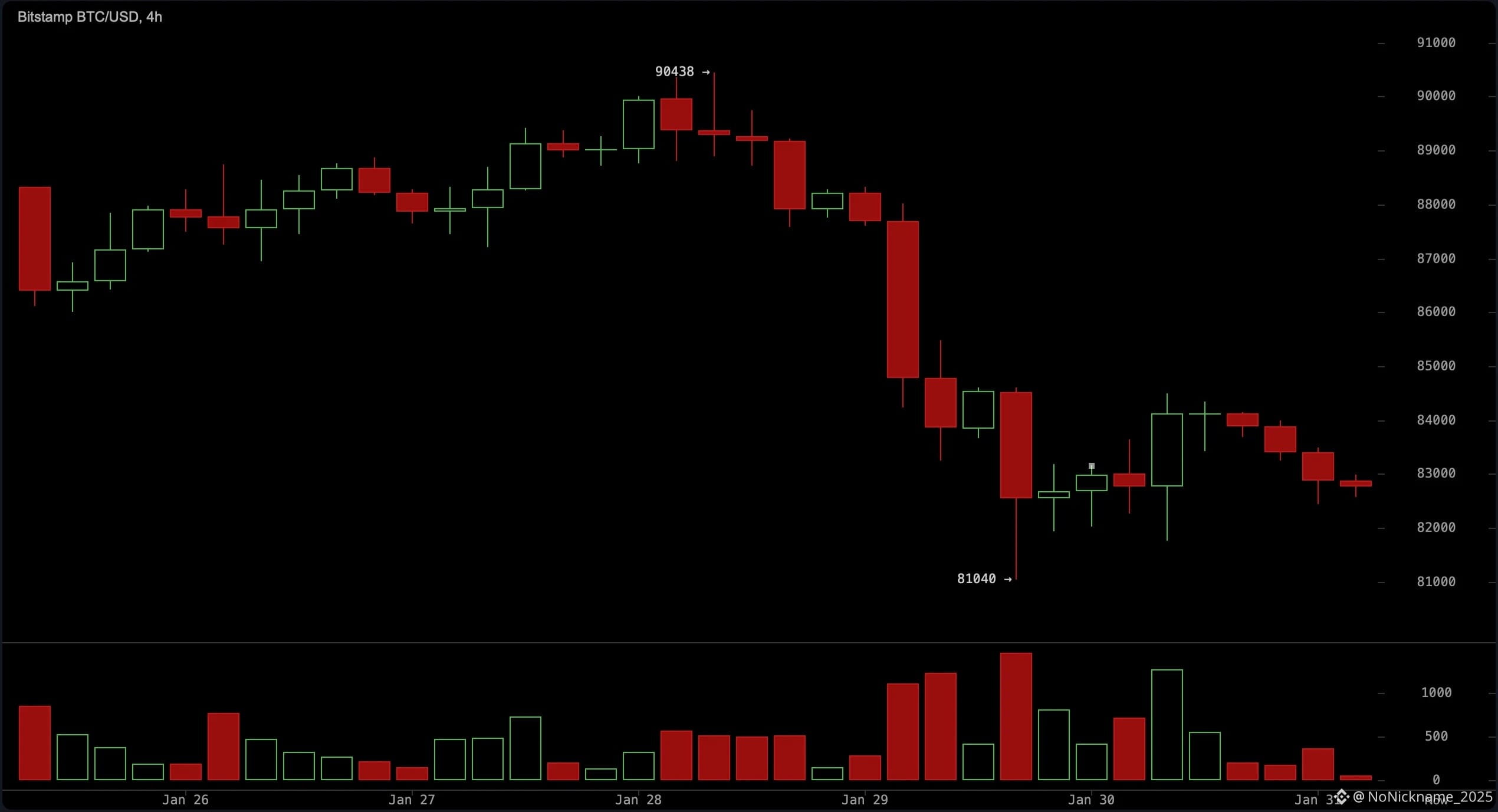 Текущая поддержка находится на уровне $82 800, но если это уступит, внимание неизбежно переключится на $81 000, ту же зону, отмеченную на более высоких временных периодах как структурно значимую.