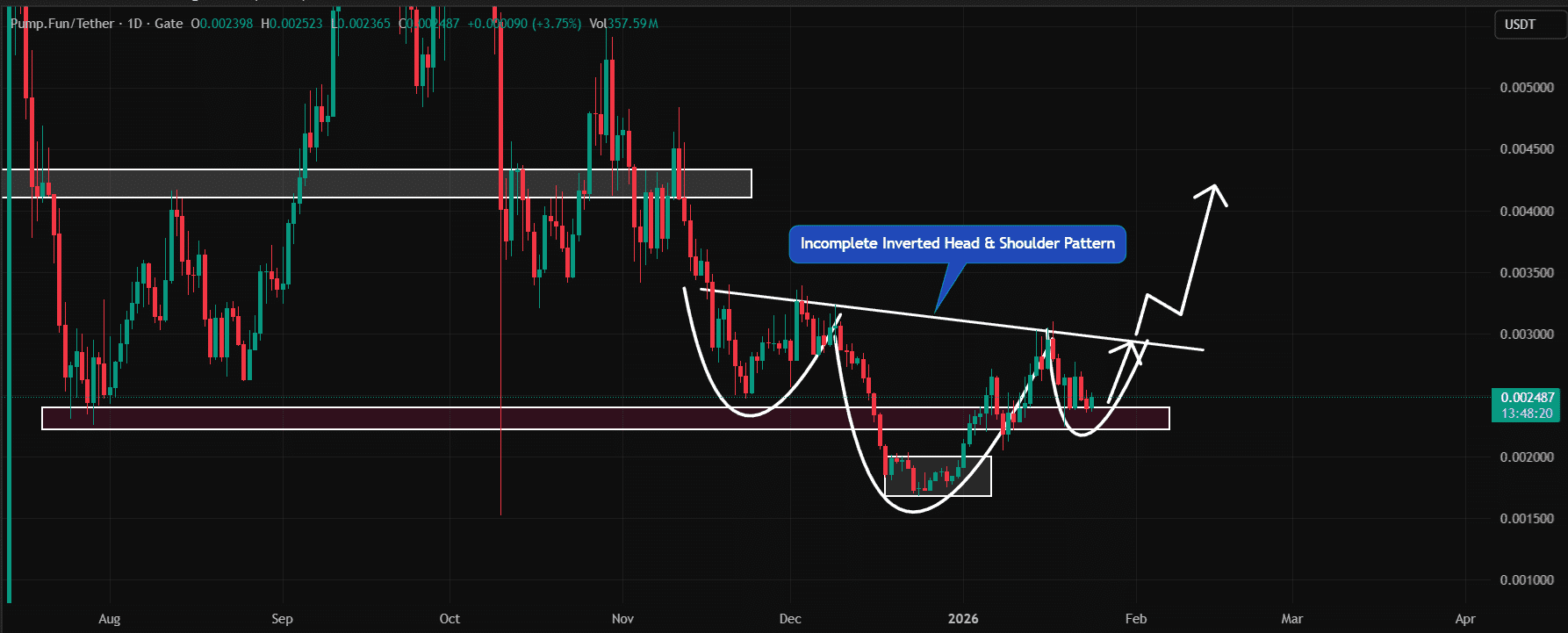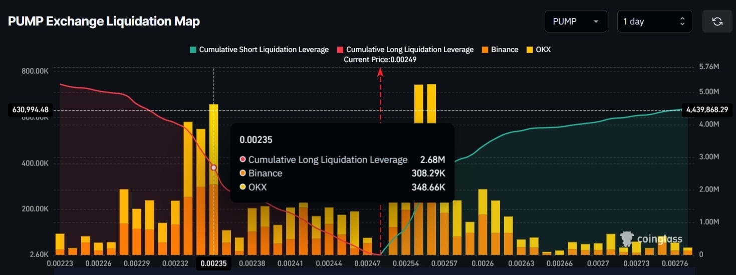 PUMP đang giữ vững hỗ trợ quan trọng tại $0.00242. Nếu mức này được duy trì, mô hình sẽ nhắm tới mục tiêu $0.0033—tương đương mức tăng 30%.