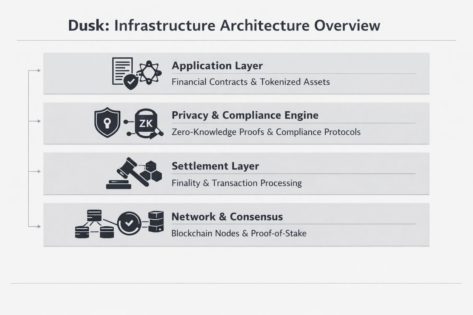 When people talk about blockchains, they often talk about products, apps, or features. Dusk is trying to build something a bit different. Its focus is not on being a flashy tool, but on becoming infrastructure that real financial systems can rely on. In traditional finance, most important systems are invisible. They quietly handle issuance, transfers, settlement, and reporting every day. Dusk is designed with the same mindset, but using modern blockchain technology.