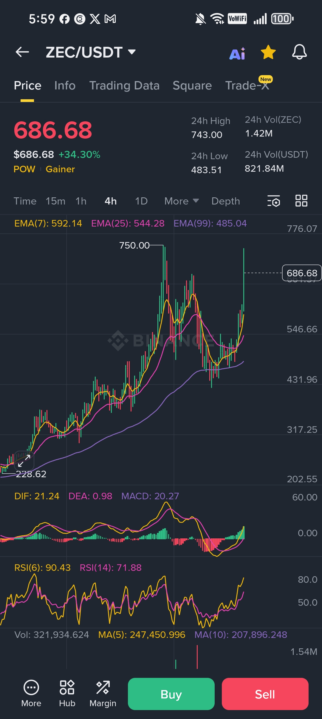 ZEC/USDT acabou de entregar um movimento massivo, subindo para $686 com um impressionante +34% de aumento nas últimas 24 horas.
