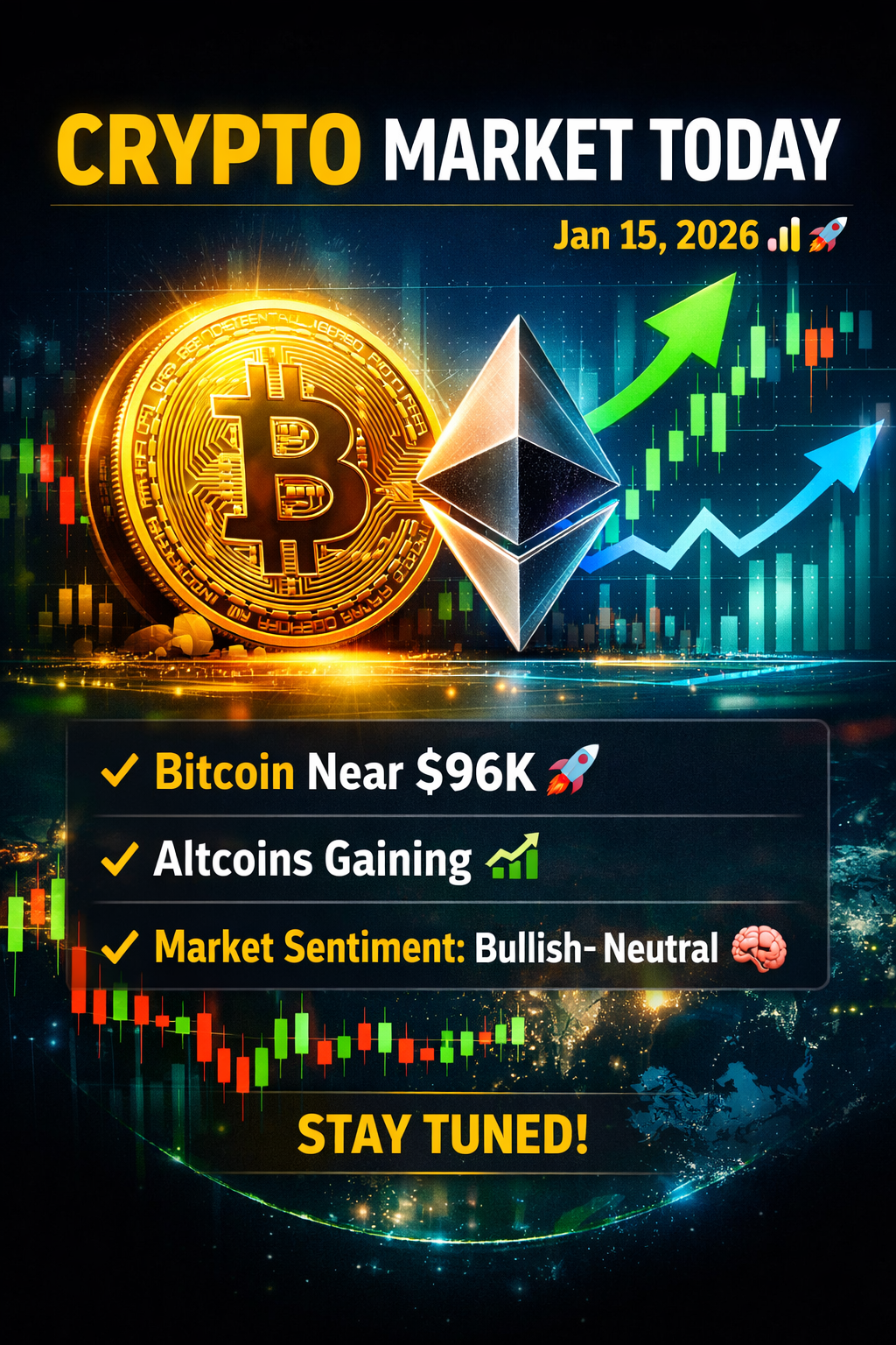 $BTC Hoje o mercado de criptomoedas está misto, mas principalmente positivo, já que o Bitcoin se mantém forte perto de $96.000–$97.000, com um renovado interesse dos traders, alcançando altos de várias semanas devido ao alívio das preocupações com a inflação e um otimismo mais amplo. A força do BTC está apoiando o mercado como um todo e incentivando os compradores 👀