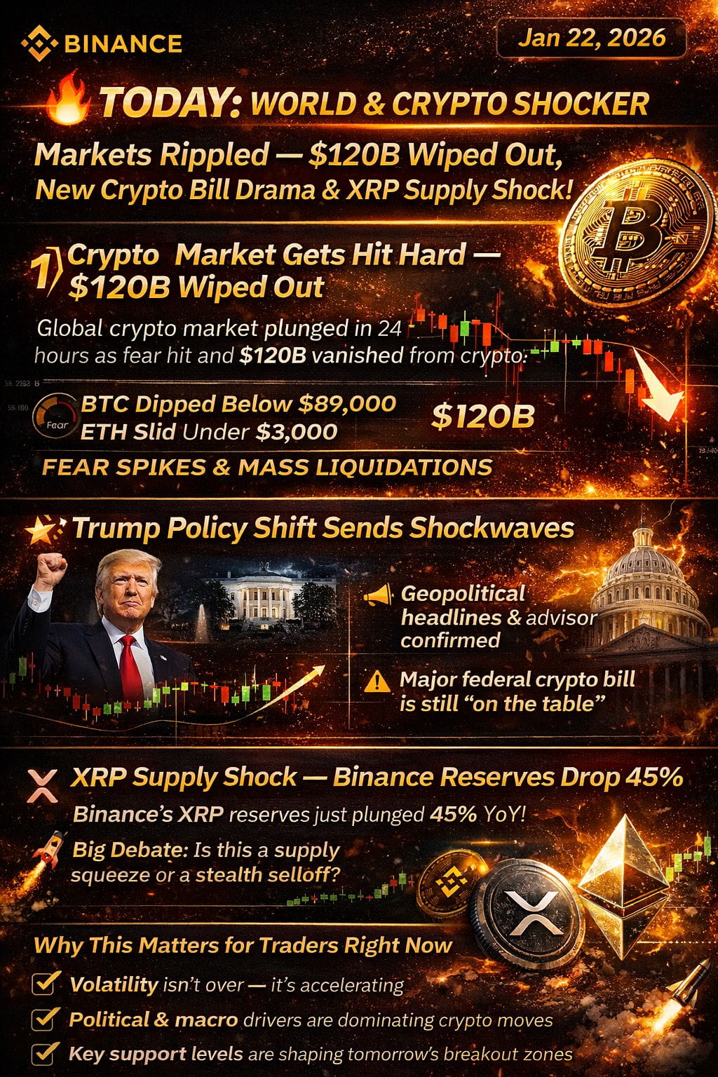 💡 Conclusão: Isso não é apenas uma queda de preço — é uma sacudida estrutural impulsionada por geopolítica, políticas, choques de liquidez e comportamento de baleias. Os traders devem observar de perto o suporte do BTC, a dinâmica do XRP e os desenvolvimentos regulatórios.#WEFDavos2026 #TrumpCancelsEUTariffThreat #WhoIsNextFedChair #TrumpTariffsOnEurope