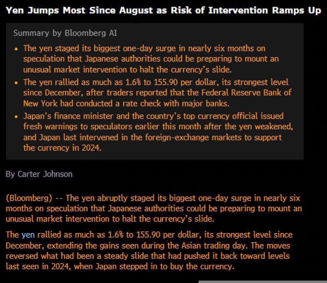 ✅ The New York Fed has already done rate checks, which is the exact step taken before real currency intervention. That means the U.S. is preparing to sell dollars and buy yen.