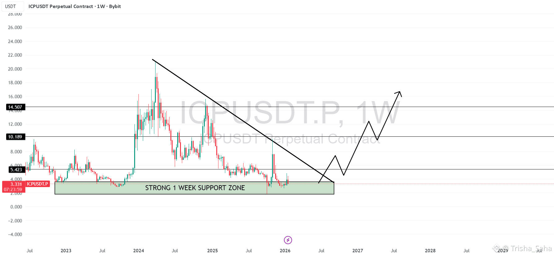 📌 ICP Technical Analysis: price massiv dumped by rejecting 3 times trendline. price fell from the 20 area down to the 3 range over the multi-year cycle. currently price is trading near 4.41 as it starts to show signs of a structural rebound.