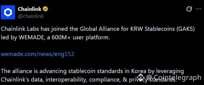 Blockchain company Wemade added Chainlink Labs to its Global Alliance for KRW Stablecoins (GAKS), expanding the consortium’s data and oracle infrastructure as it builds compliance-focused rails for won-pegged stablecoins.