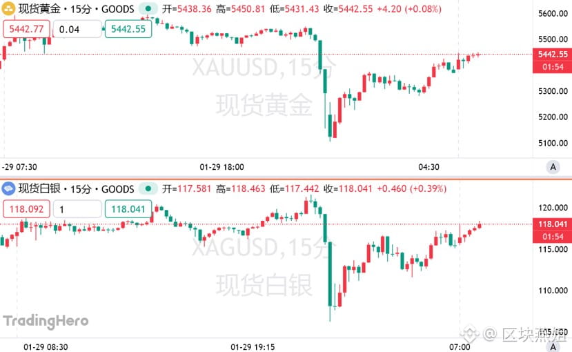 受益于特朗普的言论,周五亚市早盘现货金银在经历隔夜大跌后上涨,现货黄金涨至5450美元/盎司,涨幅约1.5%;现货白银涨至118美元/盎司之上,涨幅超2%。