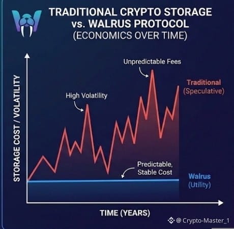 The first time I really looked at storage in crypto, I caught myself doing what most of us do. I checked the token, skimmed the throughput numbers, and moved on. Data felt abstract. Something you upload, forget, and hope doesn’t break later. What struck me when I started digging into Walrus Protocol is that it quietly refuses to play that game. It treats data less like a speculative object and more like a cost you live with for years. That shift sounds subtle, but it changes the economics underneath everything.