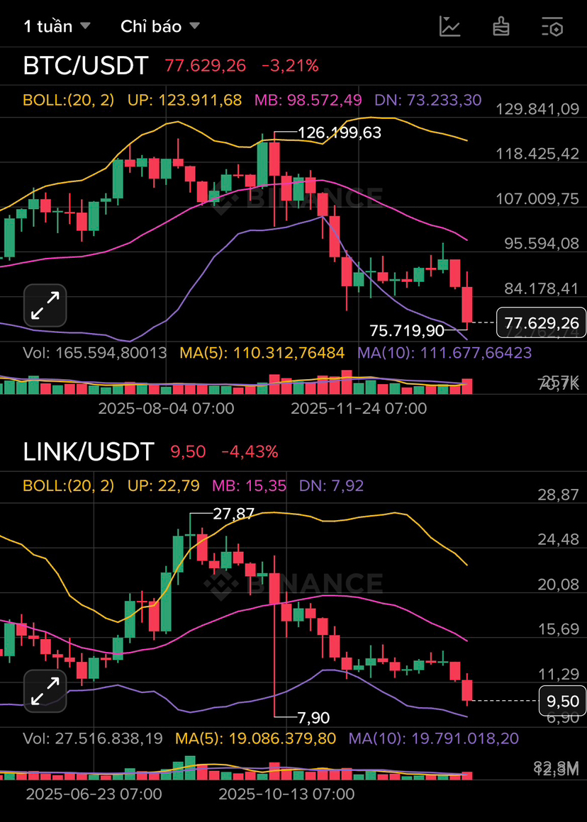 Altcoins (LINK) sofrem quedas significativamente mais profundas, consistentes com seu beta mais alto quando a liquidez do mercado se deteriora.