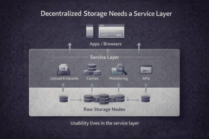 Em Karachi 2026, onde a internet é instável, os custos importam e as pessoas querem uploads/leitura rápidos para mídia, jogos, mercados de dados—o serviço de camada do Walrus poderia ser a coisa que torna o armazenamento descentralizado finalmente utilizável para produtos reais. Não "armazenar para sempre e rezar," mas "armazenar com regras, velocidade, operadores que se importam e provas que você pode verificar."