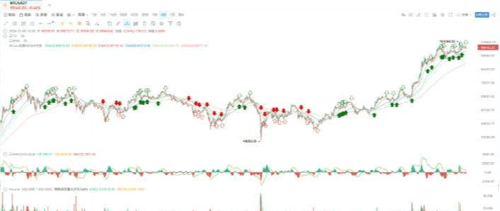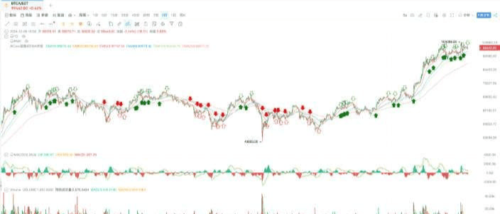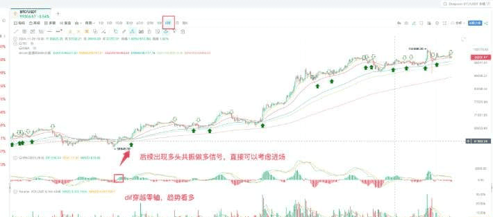 Acesta poate să te ajute să surprinzi cu precizie cel mai bun moment de intrare. Operațiunea specifică este: mai întâi folosește linia DIF pentru a determina direcția tendinței, apoi folosește semnalele de rezonanță pentru a determina punctele specifice de intrare, combinarea celor două poate îmbunătăți semnificativ rata de succes a tranzacțiilor.