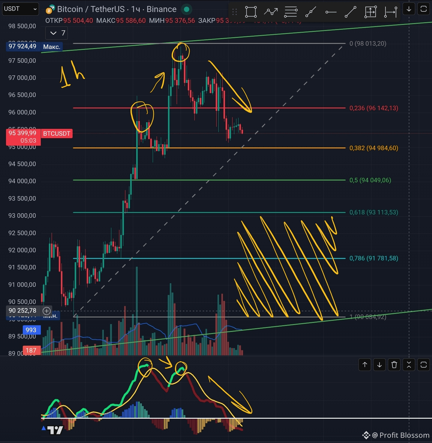 📍Вывод для себя я делаю следующий: ожидай дальнейшего снижения цены в район 91k