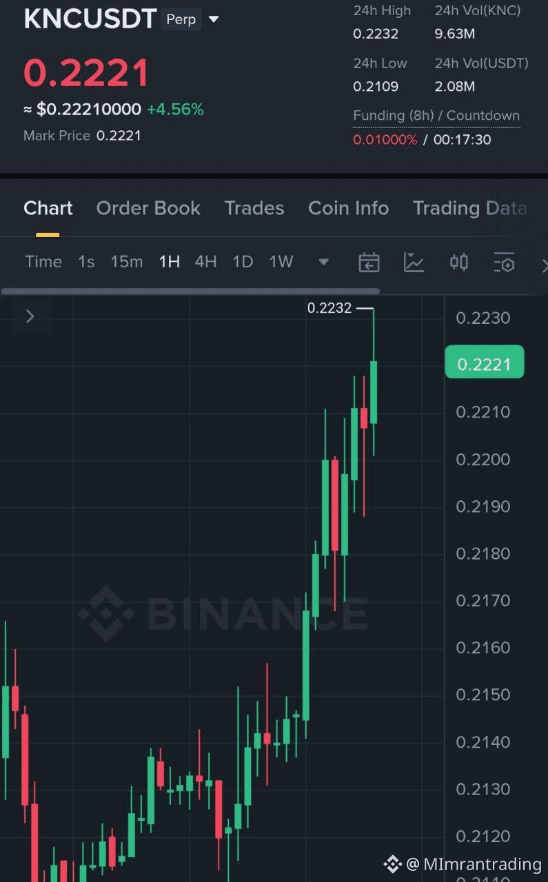 The crypto market never sleeps, and today’s spotlight is on KNCUSDT, which delivered a thrilling ride for traders. With a sharp upward momentum captured on the 1-hour candlestick chart, KNC hit a high of 0.2232 USDT, marking a bullish breakout that rewarded savvy traders with a 28% profit.