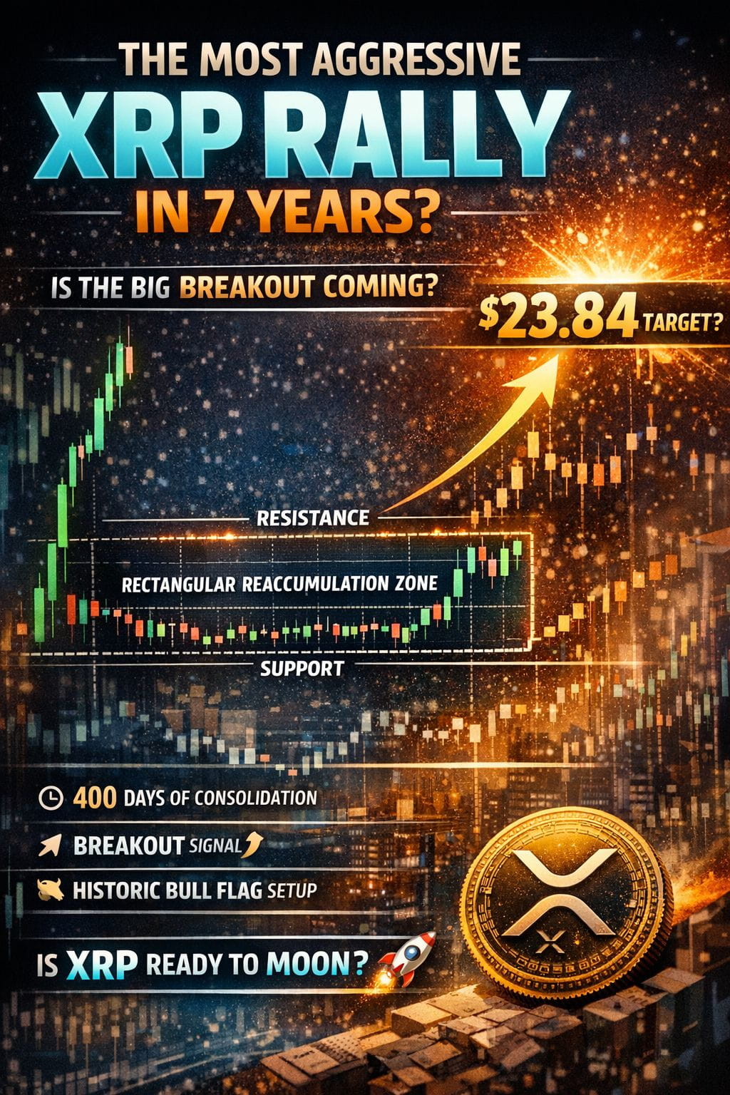 For more than 400 days, XRP has been trading inside a clearly defined Rectangular Reaccumulation Zone—a structure that, in technical analysis, frequently precedes powerful breakout moves.