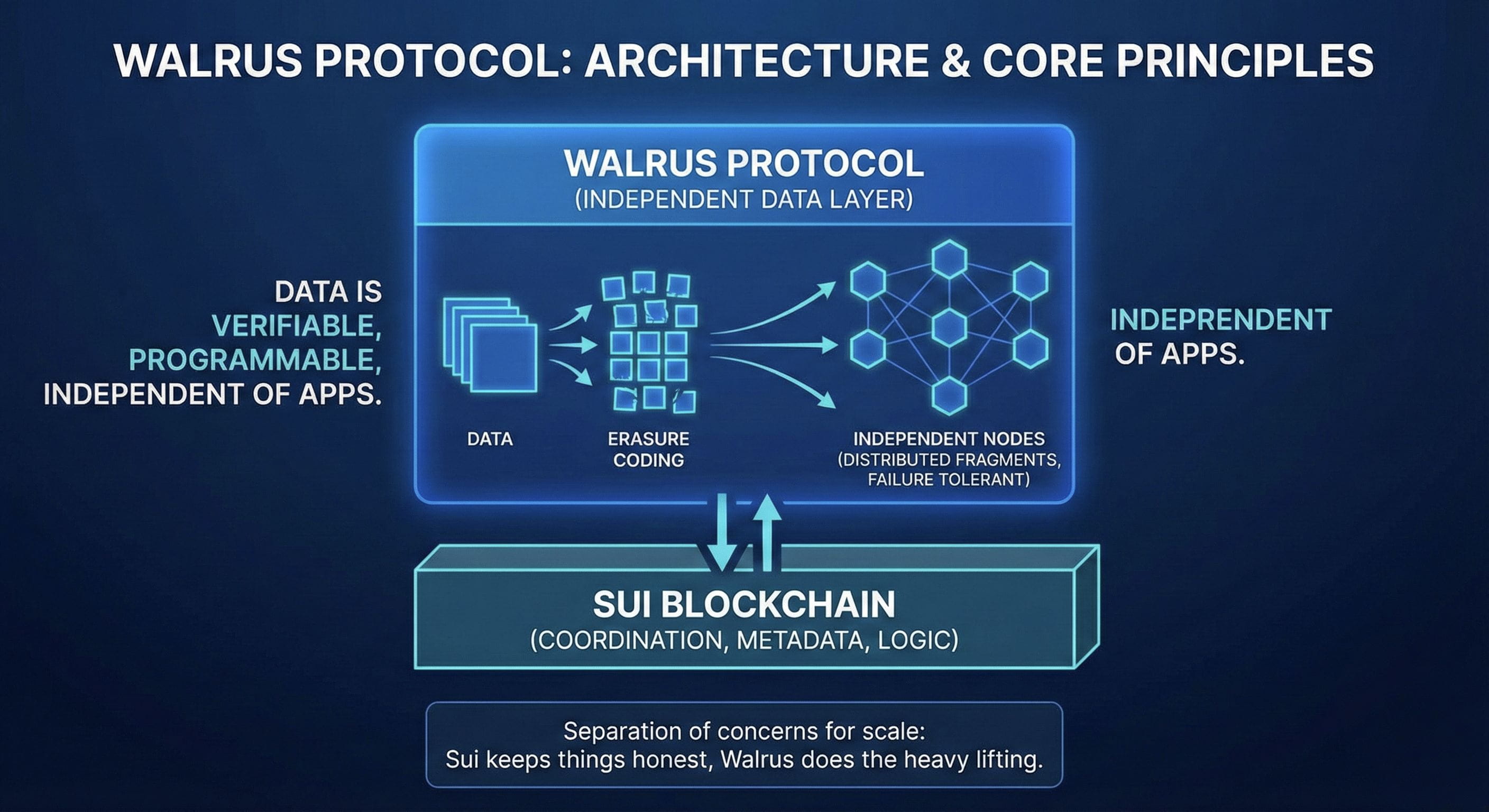 I’ve spent a lot of time reading and thinking about Walrus Protocol, and the more I look at it, the more it feels different from most projects in this space. It doesn’t try to impress you immediately. There’s no loud narrative or aggressive marketing. Instead, it reveals itself slowly, through design choices that make sense once you understand what problem it’s actually trying to solve.