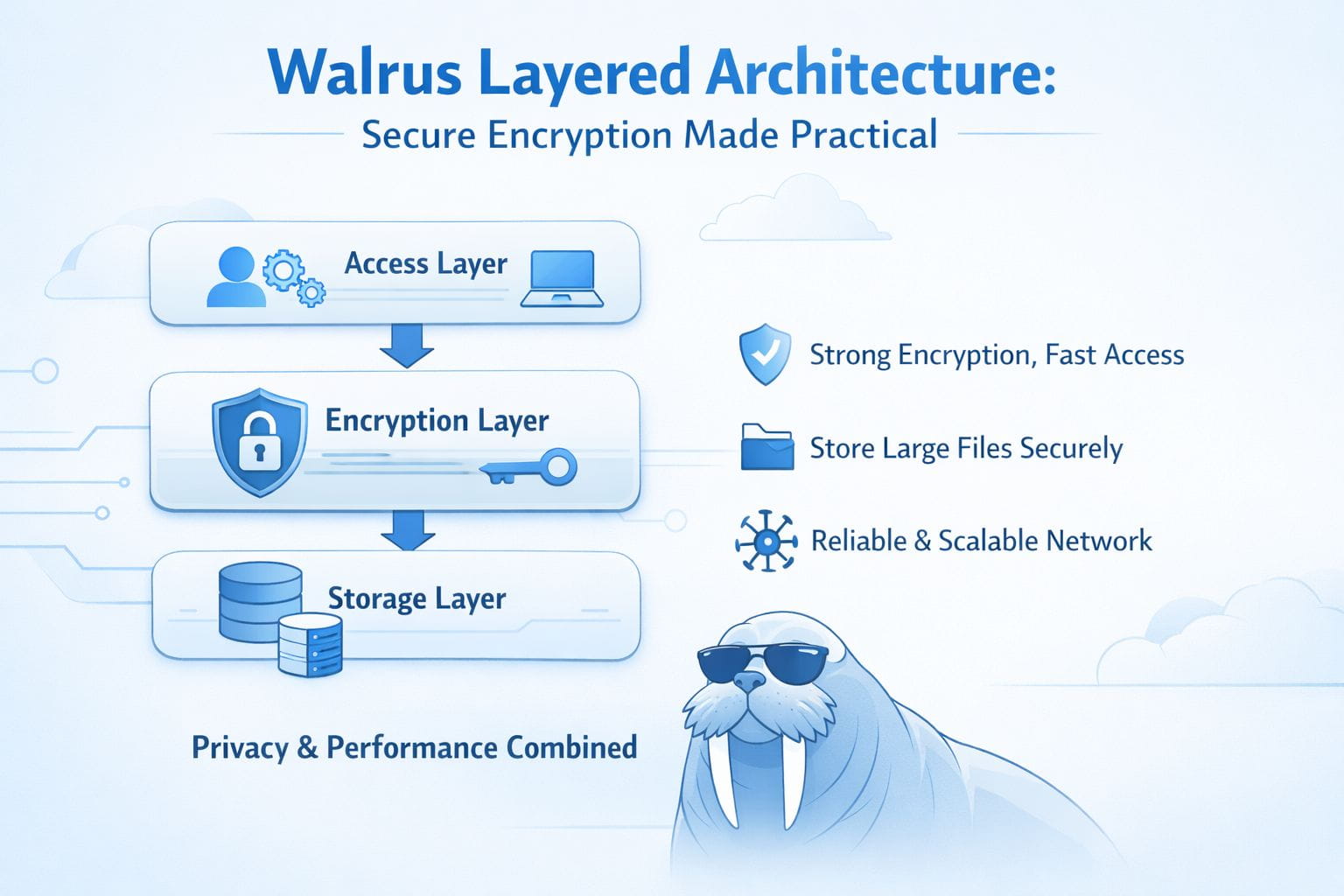#Walrus uses a layered architecture that separates data storage, encryption, and access logic into clear, independent layers.