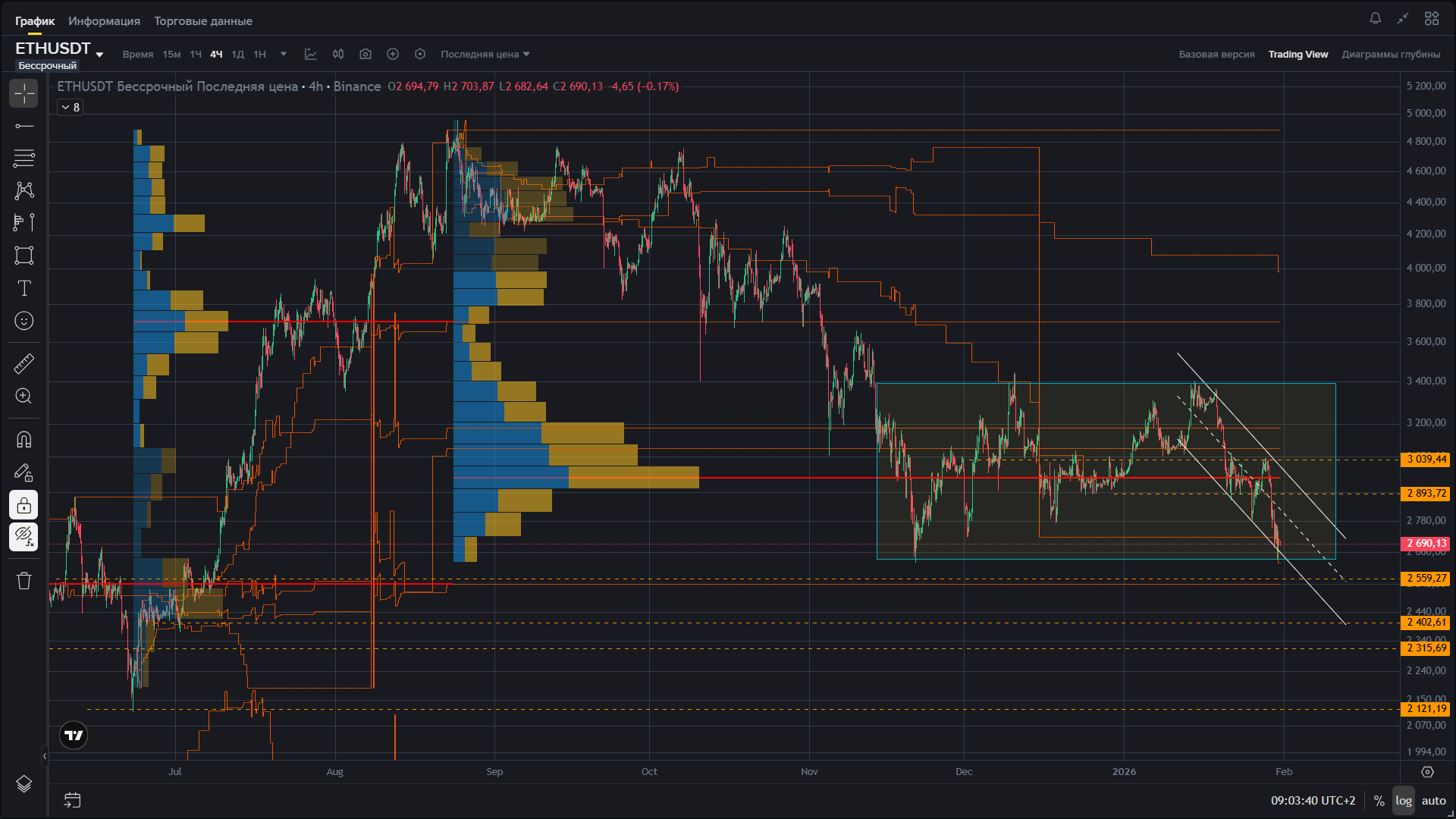 • 2600–2559 — zonă de acumulare a lichidității