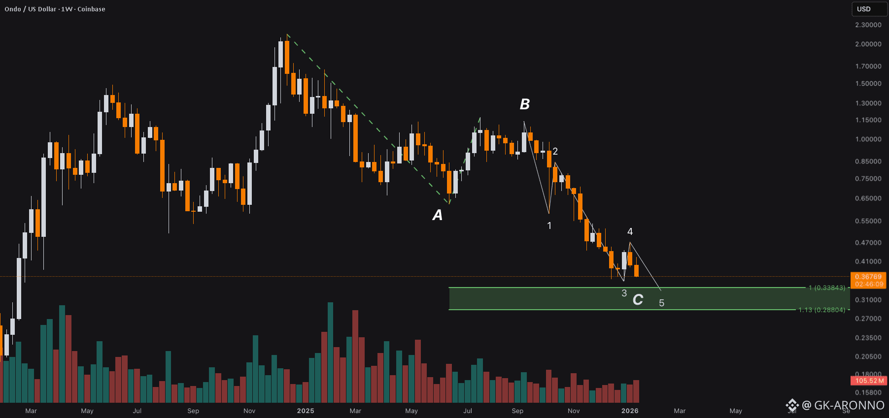 Selling volume has been drying up but no evidence of RSI bullish divergence on the weekly thus far or any other bullish clues from my main indicators. But this TA suggests further retracement of Wave-C for ONDO. Key levels of support to look out for are between $0.28 & $0.33.