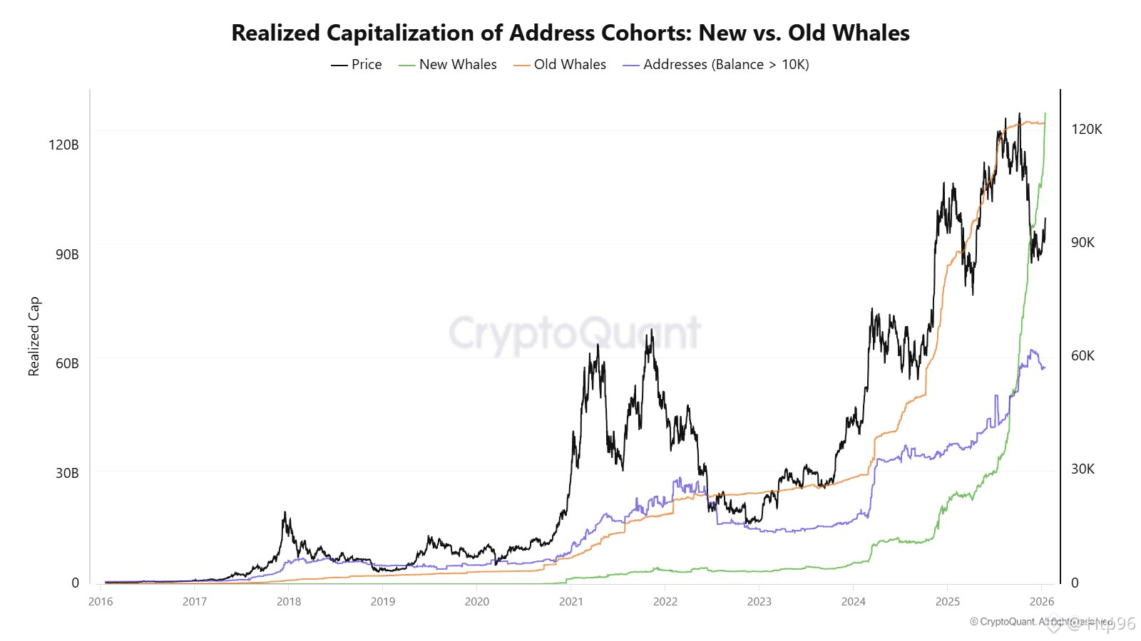 Dữ liệu on-chain cho thấy lượng BTC mà nhóm cá voi mới này nắm giữ đã vượt qua các cá voi cũ, phản ánh một sự dịch chuyển rõ rệt về cấu trúc sở hữu. Điều này cho thấy dòng tiền lớn đang được tái phân bổ, với những kỳ vọng mới về chu kỳ tăng trưởng tiếp theo.