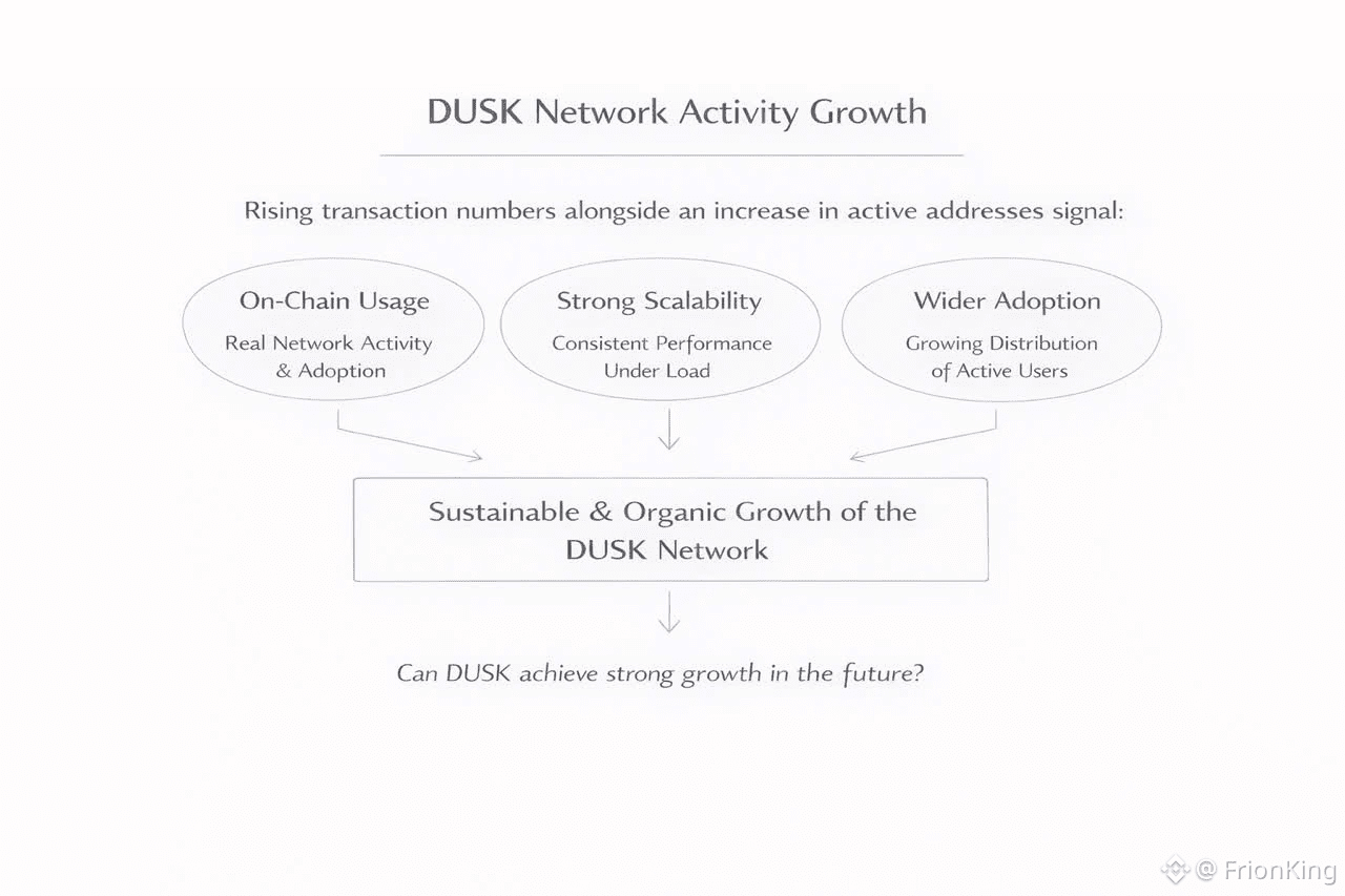 Looking ahead, the most constructive scenario for Dusk is simple, sustained expansion in transactions and active addresses driven by practical usage, better tooling, and a growing builder ecosystem. If that happens, on-chain activity becomes more than a metric, it becomes proof that Dusk is turning its design priorities into real adoption. And in a market where many projects struggle to convert attention into usage, that kind of signal is worth taking seriously. I have a question for you, do you think Dusk Network can achieve strong growth in transaction volume and activity in the future?