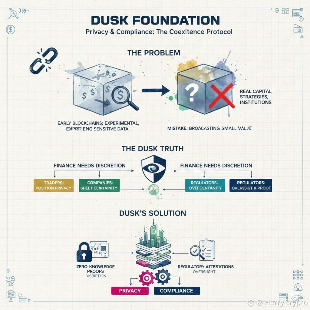 When you look closely at Dusk Foundation, it feels less like a typical crypto project and more like a reaction to a mistake the industry made early on. We convinced ourselves that full transparency was always a virtue. It worked when blockchains were experimental toys moving small amounts of value. It stopped making sense the moment real capital, real strategies, and real institutions showed up. Dusk exists because that realization finally caught up with the tech.