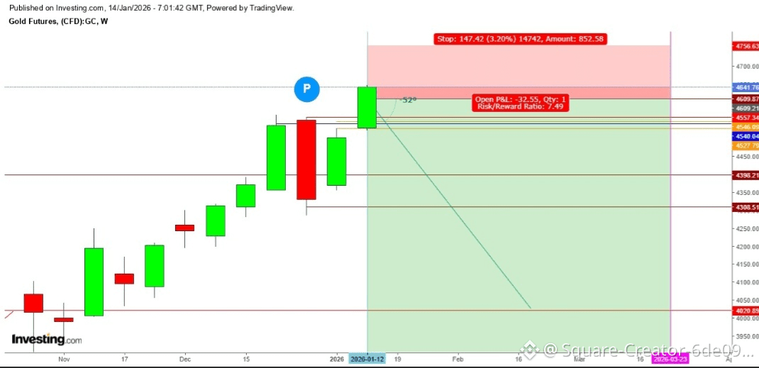 في الرسم البياني الأسبوعي، بعد اختبار أدنى مستوى للأسبوع عند 4521.39 دولارًا وأعلى مستوى للأسبوع عند 4647.29 دولارًا، يتم تداول العقود الآجلة للذهب حاليًا عند 4641.15 دولارًا، مما يدل على انتشار زخم صعودي قوي هذا الأسبوع، والذي قد يستمر إذا أجلت المحكمة العليا مرة أخرى الحكم الوشيك بشأن قضية التعريفات التجارية لترامب.
