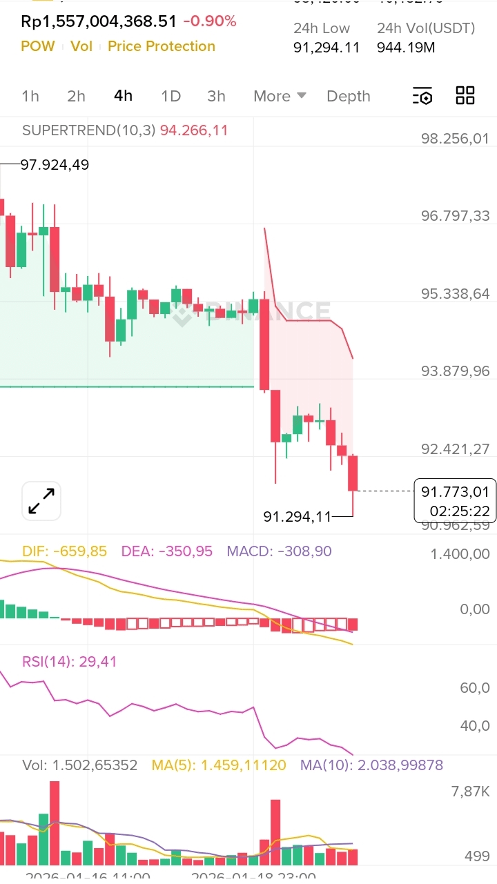 Супертренд: Показывает красный сигнал на уровне $94.266, подтверждая краткосрочное медвежье давление.